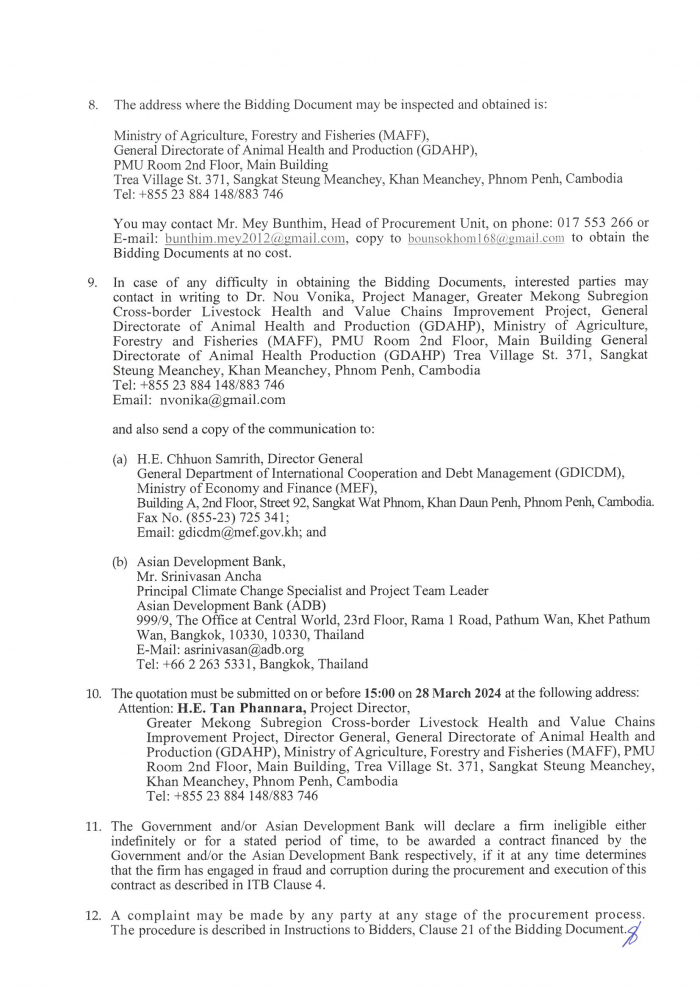 ជូនចំពោះ ឯកឧត្តម ឌិត ទីណា រដ្ឋមន្ត្រីក្រសួងកសិកម្ម រុក្ខាប្រមាញ់...
