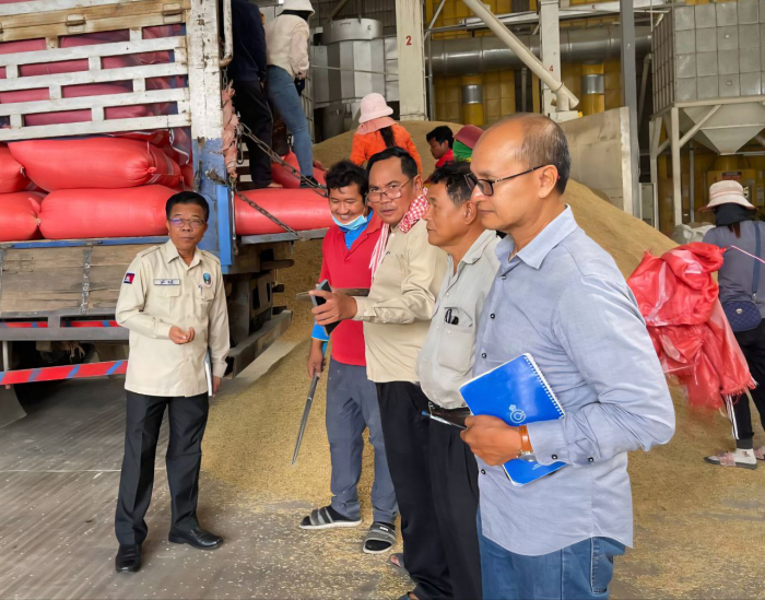 ឯកឧត្តមបណ្ឌិតរដ្ឋលេខាធិការ យ៉ង សាំង កុមារ អញ្ជើញដឹកនាំមន្ត្រីកសិកម្មឃុំនៅក្នុងស្រុកចំនួនពីរ ដើម្បីទស្សនកិច្ចរោងម៉ាស៊ីនកិនស្រូវ វង្ស ប៊ុនហេង ឈ្វេងយល់ពីគុណភាពស្រូវ និងខ្សែច្រវាក់កែច្នៃអង្ករ