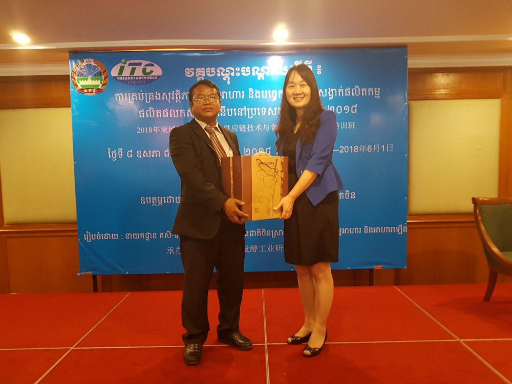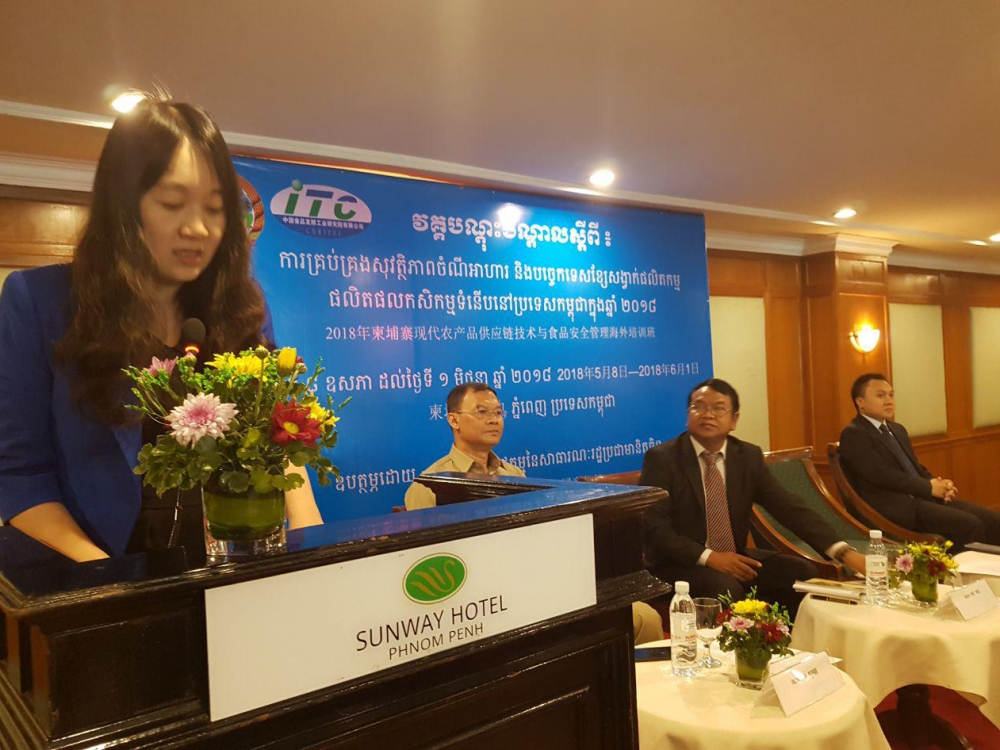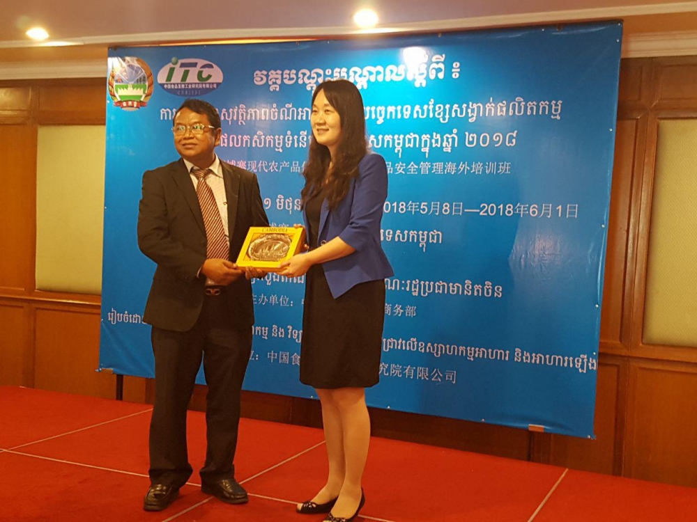 នៅព្រឹកថ្ងៃសុក្រ ៣រោច ខែជេស្ឋ ឆ្នាំច សំរឹទ្ធិស័ក ព.ស ២៥៦២ ត្រូវនឹងថ្ងៃទី០១ ខែមិថុនា ឆ្នាំ២០១៨ នាយកដ្ឋានកសិ-ឧស្សាហកម្ម នៃក្រសួងកសិកម្ម រុក្ខាប្រមាញ់ និងនេសាទ បានរៀបចំពិធីបិទវគ្គបណ្តុះបណ្តាលស្តីពី ការគ្រប់គ្រងសុវត្ថិភាពចំណីអាហារ និងបច្ចេកទេស​ខ្សែសង្វាក់​ផលិតកម្មផលិត​ផលកសិកម្ម​ទំនើបនៅប្រទេសកម្ពុជាឆ្នាំ២០១៨ ក្រោមអធិបតីភាព លោក គង់ ភាជ ប្រធាននាយកដ្ឋានកសិ-ឧស្សាហកម្ម និងលោកស្រី LUO YANQIN នាយកនៃវិទ្យាស្ថានជាតិចិនស្រាវជ្រាវ លើឧស្សាហកម្មអាហារ និងអាហារឡើងមេ។ ក្នុងនោះដែរលោកស្រី LUO YANQIN បាន​មានមតិស្វាគមន៍ និងថ្លែងអំណរគុណចំពោះថ្នាក់ដឹកនាំនាយកដ្ឋានកសិ-ឧស្សាហកម្ម និងអ្នកសម្របសម្រួល​ក្នុងវគ្គបណ្តុះបណ្តាលនេះ ដែលបាន​យកចិត្តទុកដាក់​ក្នុងការរៀបចំវគ្គ​បណ្តុះបណ្តាលនេះឡើង​ប្រកប​​ដោយ​​ជោគជ័យ លើសពីនេះទៅទៀត​លោកស្រីនាយក ក៏បានថ្លែងអំណរ​គុណ​ដល់​សិក្ខាកាមទាំងមូល​ដែលបានយកចិត្ត​​ទុកដាក់ក្នុងការសិក្សារៀនសូត្រ ដើម្បីបង្កើនចំណេះដឹងបន្ថែម និងទទួលនូវ​បទពិសោធន៍​ល្អៗយក​មក​អនុវត្តន៍​​តាមអង្គភាពនីមួយៗ។ លើសពីនេះទៅទៀត លោកប្រធាន គង់ ភាជ បានមានមតិស្វាគមន៍ និងសូមថ្លែង​អំណរគុណ​ដល់វិទ្យាស្ថានជាតិ​ចិន​ស្រាវជ្រាវ លើឧស្សាហកម្ម​អាហារ និងអាហារ​ឡើងមេ ជាពិសេសលោកស្រីនាយក និងសហការីទាំងអស់ ដែលបានរៀបចំវគ្គបណ្តុះបណ្តាលនេះឡើង និងថ្លែងអំណរគុណចំពោះក្រសួងពាណិជ្ជកម្មនៃសាធារណរដ្ឋប្រជាមានិតចិន ដែលបានឧបត្ថម្ភ នៅក្នុងវគ្គ ​បណ្តុះបណ្តាល​នេះ ហើយ​លោកប្រធាន​សង្ឃឹមថាភាគីចិននឹងបន្តការសហការ និងមានចំណងមិត្តភាពល្អ រវាងកម្ពុជា-ចិន ដើម្បីរៀបចំអោយមានជាវគ្គបណ្តុះបណ្តាលទាំងក្នុង និងក្រៅ​ប្រទេស ដើម្បីទទួលបានចំណេះដឹង និងបទពិសោធន៍ល្អៗសម្រាប់យកមកអភិវឌ្ឍន៍វិស័យកសិកម្មនៅក្នុងប្រទេសកម្ពុជ។ ជាទីបញ្ចប់លោកប្រធាន​បាន​ជូនពរដល់លោកស្រីនាយក និងសហការីទាំងអស់ ពេលវិលត្រឡប់ទៅកាន់ប្រទេសវិញ សូមអោយជួបតែសំណាងល្អ សុខសុវត្ថិភាព​ក្នុងការ​ហោះហើរ និងទទួលជោគជ័យគ្រប់ភារកិច្ច៕
