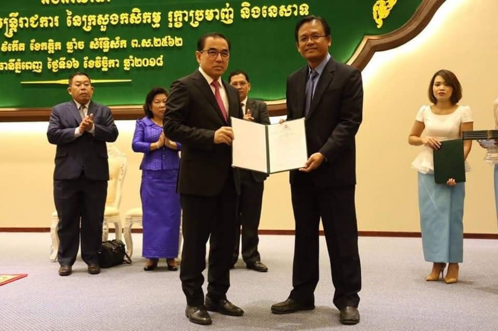 ឯកឧត្តមអគ្គលេខាធិការ សរ ចិត្រា អញ្ជើញចូលរួមក្នុងពិធីចុះហត្ថលេខាលើអនុស្សរណៈនៃការយោគយល់គ្នា (MoU) រវាងក្រសួងកសិកម្ម រុក្ខាប្រមាញ់ និងនេសាទ ជាមួយអង្គការដៃគូអភិរក្សសត្វព្រៃ