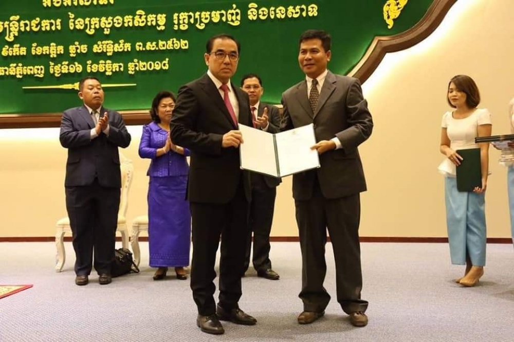 នាព្រឹកថ្ងៃសុក្រ ៩កើត ខែកត្តិក ឆ្នាំច សំរឹទ្ធិស័ក ព.ស ២៥៦២ ត្រូវនឹងថ្ងៃទី១៦ ខែវិច្ឆិកា ឆ្នាំ២០១៨ នៅទីស្តីក្រសួងកសិកម្ម រុក្ខាប្រមាញ់ និងនេសាទបានរៀបចំពិធីប្រកាសចូលកាន់តំណែងរបស់មន្ត្រីរាជការ ក្រោមអធិបតីភាពឯកឧត្តមរដ្ឋមន្រ្តី វេង សាខុន និងមានការអញ្ជើញចូលរួមផងដែរពីសំណាក់ឯកឧត្ដម លោកជំទាវ ថ្នាក់ដឹកនាំក្រសួង លោក លោកស្រី ដែលជាមន្រ្តីរាជការក្រោមឱវាទក្រសួងយ៉ាងច្រើនកុះករ។ ឆ្លៀតឱកាសនេះ ក្នុងនាមក្រសួងកសិកម្ម រុក្ខាប្រមាញ់ និងនេសាទ និងក្នុងនាមខ្លួនលោកផ្ទាល់ ឯកឧត្តមរដ្ឋមន្រ្តីបានគោរពថ្លៃងអំណរគុណយ៉ាងជ្រាលជ្រៅជាទីបំផុតជូនចំពោះសម្តេចអគ្គមហាសេនាបតីតេជោ ហ៊ុន សែន នាយករដ្ឋមន្ត្រី ដែលសម្តេចបានគាំទ្រ លើកទឹកចិត្តដ៏ខ្ពង់ខ្ពស់ និងឯកភាពតាមសំណើរបស់ឯកឧត្តមរដ្ឋមន្រ្តីសុំតែងតាំងមន្ត្រីរាជការចំនួន១២រូប ជាថ្នាក់ដឹកនាំអង្គភាពក្រោមឱវាទក្រសួងដែលក្នុងនោះមានថ្នាក់អគ្គនាយករង ៧រូប និងប្រធាននាយកដ្ឋាន៥រូប។
