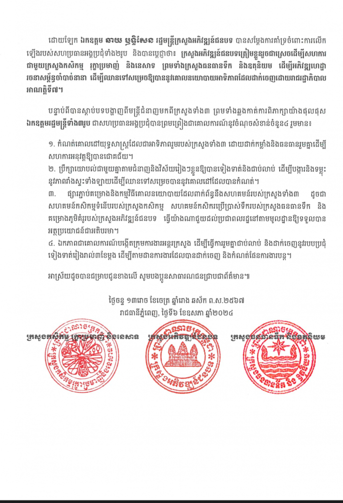 សេចក្តីប្រកាសព័ត៌មានរួម ស្ដីពី កិច្ច​ប្រជុំត្រីភាគី អំពី «ការងារ​កសិកម្ម អភិវឌ្ឍន៍ជនបទ និង​ធនធាន​ទឹក»