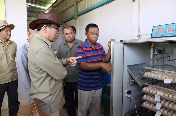 ចេញពីក្រុងស្វាយរៀង ឯកឧត្តមរដ្ឋមន្ត្រី និងអភិបាលរងខេត្ត បានបន្តមកភូមិតាជ័យ ឃុំកំពង់ចម្លង ស្រុកស្វាយជ្រុំ មកពិនិត្យការភ្ញាស់ស៊ុតមាន់របស់បង តូច សេង។ បង សេង បានឲ្យដឹងថា គ្រួសារគាត់ដំបូងឡើយបានទទួលមេមាន់ចំនួន ២៨ក្បាល និងឈ្មោល៤ក្បាលពីគម្រោងឈ្មោះថា "ការជំរុញកំណើនវិស័យកសិកម្មប្រកបដោយចីរភាព និងបរិយាប័ន្នលើអនុវិស័យជលផល និងផលិតកម្មសត្វ" ដែលទទួលបានថវិកាពីសហភាពអឺរ៉ុប។ ដោយទទួលបានការបណ្តុះបណ្តាលបច្ចេកទេសចិញ្ចឹម និងភ្ញាស់ពីមន្រ្តីជំនាញនៃអគ្គនាយកដ្ឋានសុខភាពសត្វ និងផលិតកម្មសត្វ រួមផ្សំជាមួយការខិតខំប្រឹងប្រែងជាបណ្តើរៗកន្លែងភ្ញាស់ស៊ុតមាន់របស់លោកមានការវិវឌ្ឍន៍រីកចម្រើននាថ្ងៃនេះ។ ជាក់ស្តែងក្នុង១ខែ លោកអាចបញ្ចេញកូនមាន់ឲ្យទីផ្សារពី ៤-៥ពាន់ក្បាល ក្នុង១ក្បាល តម្លៃ៥ពាន់រៀល ហើយកំពុងតែពង្រីកបន្ថែមដើម្បីឆ្លើយតបតាមតម្រូវការទីផ្សារ។ និយាយក្នុងទឹកចិត្តសប្បាយរីករាយថា ដោយសារគម្រោងនេះធ្វើឲ្យគាត់មានអាជីពមួយស្ថិតស្ថេរ រឹងមាំ ដែលអាចរកចំណូលបានជាង ២ម៉ឺនដុល្លារក្នុង១ឆ្នាំ។ ដោយសារចំណូលដ៏ខ្ពស់នេះ ធ្វើឲ្យគ្រួសារលោកសេងមានជីវភាពធូរធារ ជួបជុំកូនចៅ មានការសិក្សា និងមានសុភមង្គលក្នុងគ្រួសារ។