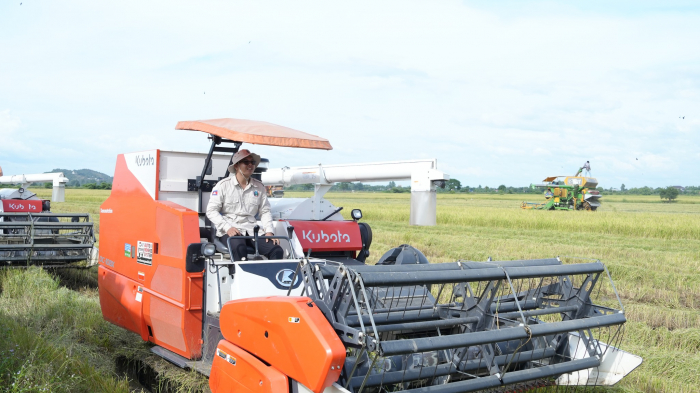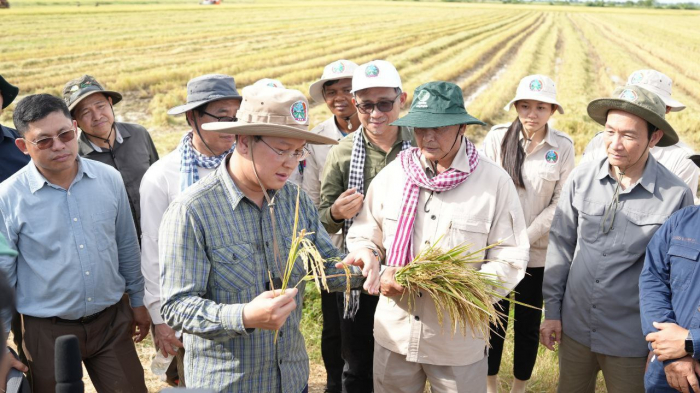 នៅរសៀលថ្ងៃទី២៥ ខែវិច្ឆិកា ឆ្នាំ២០២៤ ឯកឧត្តម ឌិត ទីណា រដ្ឋមន្រ្តីក្រសួងកសិកម្ម រុក្ខាប្រមាញ់ និងនេសាទ និងថ្នាក់ដឹកនាំបានអញ្ជើញពិនិត្យសកម្មភាពផលិតគ្រាប់ពូជស្រូវ និងចូលរួមច្រូតស្រូវនៅកសិដ្ឋានផលិតពូជស្រូវទួលសំរោង ដែលស្ថិតនៅភូមិអូរញ ឃុំបឹងព្រីង ស្រុកថ្មគោល ខេត្តបាត់ដំបង។