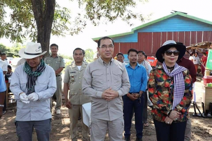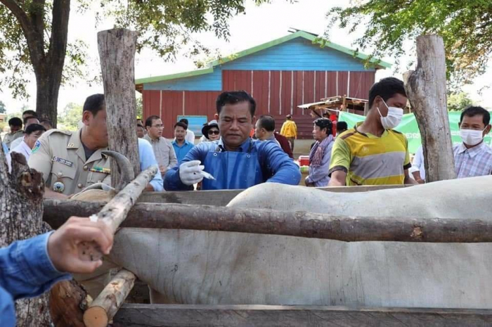 ក្នុងស្រុកសាលាក្រៅដដែល ឯកឧត្តមរដ្ឋមន្ត្រី ឯកឧត្តម និងលោកជំទាវអភិបាលរងខេត្ត រួមជា មួយសហការីបានបន្តដំណើរមកចូលរួមកម្មវិធីចាក់ថ្នាំការពារជំងឺឆ្លងសត្វពាហន:នៅភូមិទំនប់ ឃុំស្ទឹងត្រង់។ ថ្ងៃនេះ គោចំនួន ៤៨ក្បាល (មានញី ឈ្មោល តូច ធំ) បានយកមកចាក់ថ្នាំការពារជំងឺ សារទឹក។ "ការពារប្រសើរជាងព្យាបាល" បើទោះបីខេត្តមិនទាន់មានផ្ទះដំងឺឆ្លងគោ ក្របី ប៉ុន្តែតាមរបាយការណ៍របស់ការិយាល័យសុខភាពសត្វ និងផលិតកម្មសត្វបានឲ្យដឹងថា គោ ក្របីចំនួន ១ ៧៨៤ក្បាលត្រូវបានចាក់ថ្នាំការពារជំងឺអុតក្តាម និងសារទឹក ហើយកម្មវិធីនេះនឹងនៅតែបន្តឲ្យ បានគ្រប់គោ ក្របីចំនួន ១ ១ ៦៦៦ក្បាល ដែលជាតួលេខសរុបគោ ក្របីទូទាំងខេត្ត។