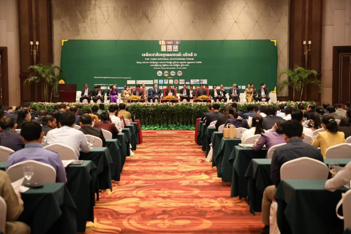 នៅក្នុងវេទិកាជាតិអេកូទេសចរណ៍​លេីកទី៣​ កាលពីថ្ងៃទី២១​ វិច្ឆិកា​ ឯកឧត្ដមរដ្ឋមន្ត្រី បានលេីកឡេីងអំពីការនាំចេញនៅនឹងកន្លែង​ ដែលជាប្រសាសន៍ដ៏ថ្លៃថ្លារបស់សម្តេចតេជោ​នាយករដ្ឋមន្ត្រី​ សំដៅដល់ការផលិតដេីម្បីផ្គត់ផ្គង់សម្រាប់ភ្ញៀវទេសចរ និងជាឱកាសលក់ផលិតផលបានយ៉ាងងាយស្រួល​ និងឆាប់រហ័ស​សម្រាប់បងប្អូនអ្នកផលិត​នៅតាមសហគមន៍ទេសចរណ៍ផ្ទាល់តែម្តង។ ឯកឧត្ដមរដ្ឋមន្ត្រី បានចូលរួមអបអរសាទរ​ និងកោតសរសេីរ​ការដឹកនាំរបស់ក្រសួងទេសចរណ៍​ និងការចូលរួមរបស់ក្រសួងបរិស្ថាន​ ក្រសួងកសិកម្ម​ និងគ្រប់តួអង្គពាក់ព័ន្ធ​ ដែលបានខិតខំជំរុញអេកូ​ទេសចរណ៍​កម្ពុជា​ ជាពិសេស​នៅក្នុងបរិបទនៃវិបត្តិសាកលជំងឺកូវីដ-១៩​ និងដំណាក់កាលស្តារឡេីងវិញនៃវិស័យទេសចរណ៍។ ឯកឧត្ដមរដ្ឋមន្ត្រី បានសង្កត់ធ្ងន់លេីភាពទាក់ទាញ​នៃសម្រស់ធម្មជាតិ​ ភាពបុិនប្រសព្វនៃមគ្គុទេសទេសចរណ៍​ ការផ្គត់ផ្គង់ចំណីអាហារឈ្ងុយឆ្ងាញ់​ និងមានសុវត្ថិភាព​ ព្រមទាំងសេវារួសរាយរាក់ទាក់​ល្អ​ ថាជាកត្តាគន្លឹះនៃភាពជោគជ័យនៃអេកូទេសចរណ៍។ កញ្ចប់សេវាទេសចរណ៍ដែលល្អ​ តម្រូវឱ្យមានការគិតគូរ​រៀបចំ​ តាំងពីការធ្វេីយ៉ាងណាបង្កេីតភាពទាក់ទាញឱ្យភ្ញៀវទេសចរមកកម្សាន្ត​ រហូតដល់ពេលភ្ញៀវត្រឡប់ទៅវិញ​ ជាមួយនឹងស្នាមញញឹម​និងអនុស្សាវរីយ៍ល្អៗ​ និងនឹកចង់ត្រឡប់មកកម្សាន្តម្តងទៀត។ កិច្ចការនេះ​ ទាមទារឱ្យមានកិច្ចសហការល្អពីគ្រប់តួអង្គ​ និងភាគីពាក់ព័ន្ធ​ ហេីយការចូលរួមថែរក្សាការពារបរិស្ថាន​ និងធម្មជាតិ​ គឺជាកិច្ចការសំខាន់​ដេីម្បីធានានិរន្តរភាពនៃអេកូទេសចរណ៍។