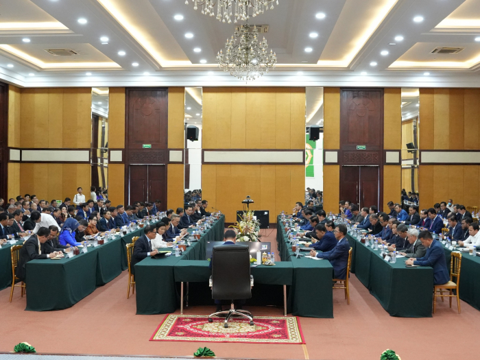 ក្នុងពិធីសំណេះសំណាលនេះ ឯកឧត្តមរដ្ឋមន្ត្រី បានសម្តែងនូវការអបអរសាទររដ្ឋាភិបាលអាណត្តិថ្មី នីតិកាលទី៧។ ជាមួយគ្នានេះ ឯកឧត្តមរដ្ឋមន្ត្រី បានសាទរ និងស្វាគមន៍យ៉ាងកក់ក្តៅចំពោះថ្នាក់ដឹកនាំក្រសួងកសិកម្ម រុក្ខាប្រមាញ់ និងនេសាទ ក្នុងការបន្តចូលរួមធ្វើការជាមួយគ្នា ដើម្បីប្រជាជន និងសង្គមជាតិទាំងមូល។ សម្រាប់ឯកឧត្តមរដ្ឋមន្ដ្រី កិច្ចប្រជុំនេះ មានសារៈសំខាន់ណាស់ក្នុងការពិភាក្សា ដើម្បីចាប់ផ្តើមអនុវត្តគោលនយោបាយវិស័យកសិកម្ម ស្របតាមយុទ្ធសាស្ត្របញ្ចកោណដំណាក់កាលទី១ ដែលបានដាក់ចេញដោយរាជរដ្ឋាភិបាលកម្ពុជា ក្រោមការដឹកនាំដ៏ខ្ពង់ខ្ពស់របស់ឯកឧត្តមកិត្តិទេសាភិបាលបណ្ឌិត ហ៊ុន ម៉ាណែត នាយករដ្ឋមន្ត្រីនៃព្រះរាជាណាចក្រកម្ពុជា។