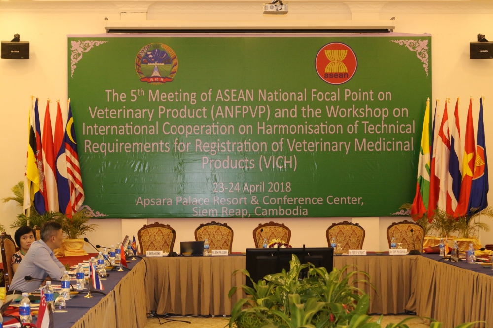 នាយកដ្ឋានសហប្រតិបត្តិការអន្តរជាតិបានរៀបចំកិច្ចប្រជុំអាស៊ានស្តីពី THE 5th ASEAN NATIONAL FOCAL POINT ON VETERINARY PRODUCT (ANFPVP) MEETING, ដែលបានប្រព្រឺត្តទៅនៅ ថ្ងៃទី២៣ ដល់ ២៤ ខែមេសា ឆ្នាំ២០១៨ នៅសណ្ឋាគារ APSARA PALACE RESORT & CONFERENCE CENTER, ខេត្តសៀមរាប, ព្រះរាជាណាចក្រកម្ពុជា