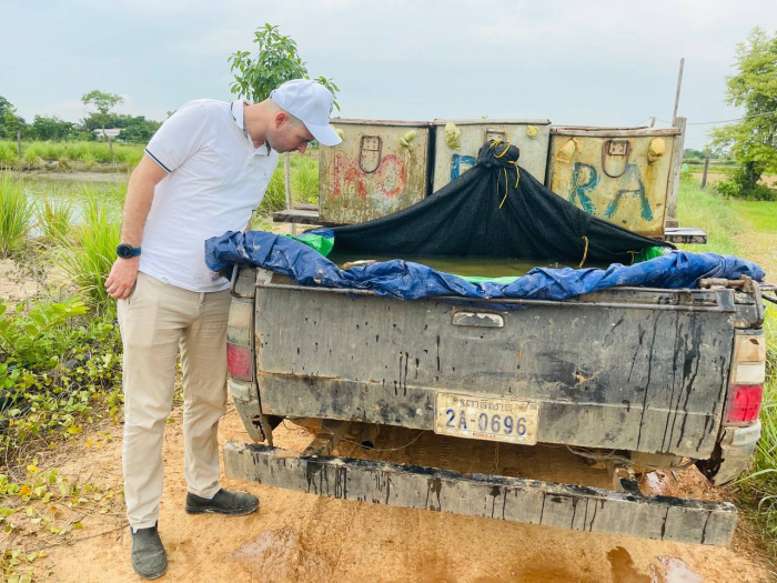 នៅថ្ងៃទី១៩ ខែឧសភា ឆ្នាំ២០២៥ ឯកឧត្តម ឃុន សាវឿន រដ្ឋលេខាធិការ ក្រសួងកសិកម្ម រុក្ខាប្រមាញ់ និងនេសាទ បានអញ្ជើញដឹកនាំក្រុមការងាររួមមានលោកជំទាវ ងិន សូនាថ អនុរដ្ឋលេខាធិការ លោក ថាយ សុមុនី ប្រធាននាយកដ្ឋានអភិវឌ្ឍន៍វារីវប្បកម្ម នៃរដ្ឋបាលជលផល និងលោក លោកស្រីគម្រោងដៃគូអភិវឌ្ឍន៍ ដោយមានការចូលរួមពីលោកអនុប្រធានមន្ទីរកសិកម្ម រុក្ខាប្រមាញ់ និងនេសាទខេត្តពោធិ៍សាត់ លោកនាយខណ្ឌរដ្ឋបាលជលផលខេត្ត លោកអភិបាលរងស្រុកបាកាន ជំទប់ទី១ ឃុំរំលេច ចុះពិនិត្យកសិដ្ឋានចិញ្ចឹមត្រី របស់វារីវប្បករ ចំនួន៣ទីតាំង ដែលគាំទ្រដោយគម្រោង CapFish Aquaculture/IT2។