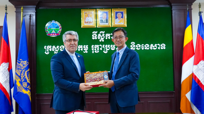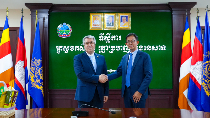 ឯកឧត្តមរដ្ឋលេខាធិការ អុឹម​ ស៊ីថុល​ ទទួលជួបជាមួយឯកឧត្តម អាលី អាកបារ ណាហ្សារី (Ali Akbar Nazari) ឯកអគ្គរដ្ឋទូតនៃសាធារណរដ្ឋឥស្លាមអ៊ីរ៉ង់ប្រចាំនៅកម្ពុជា ក្នុងជំនួបសម្ដែងការគួរសម​ និងពិភាក្សាការងារ