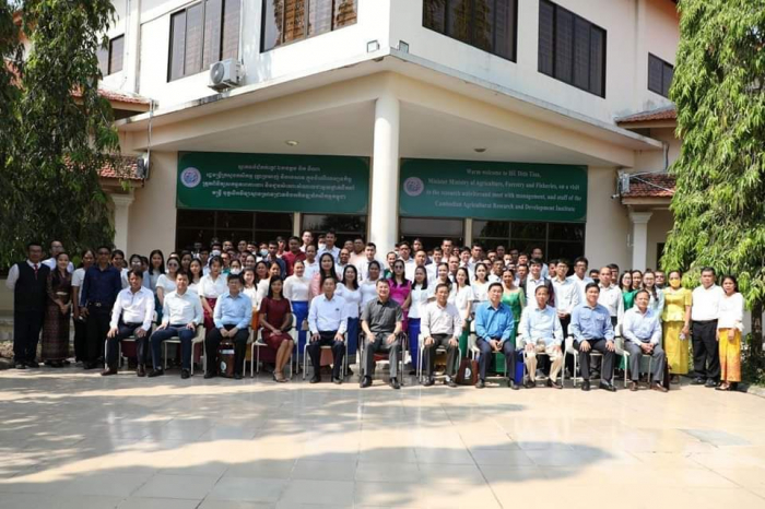 ឯកឧត្តម ឌិត ទីណា រដ្ឋមន្ត្រី ក្រសួងកសិកម្ម រុក្ខាប្រមាញ់ និងនេសាទ អញ្ជើញធ្វើទស្សនកិច្ចត្រួតពិនិត្យសកម្មភាពការងារ និងជួបសំណេះសំណាល ជាមួយថ្នាក់ដឹកនាំ មន្ត្រី និងបុគ្គលិក វិទ្យាស្ថានស្រាវជ្រាវនិងអភិវឌ្ឍកសិកម្មកម្ពុជា (CARDI) ====== នាព្រឹកថ្ងៃចន្ទ ទី១៦ ខែមករា ឆ្នាំ២០២៣ ឯកឧត្តម ឌិត ទីណា រដ្ឋមន្ត្រីក្រសួងកសិកម្ម រុក្ខាប្រមាញ់ និងនេសាទ និងសហការីអមដំណើរបានអញ្ជើញធ្វើទស្សនកិច្ចត្រួតពិនិត្យសកម្មភាពការងារ និងជួបសំណេះសំណាល ជាមួយថ្នាក់ដឹកនាំ មន្ត្រី និងបុគ្គលិក វិទ្យាស្ថានស្រាវជ្រាវនិងអភិវឌ្ឍកសិកម្មកម្ពុជា (CARDI) ។ ក្នុងពិធីទស្សនកិច្ចនេះ ឯកឧត្តម រដ្ឋមន្ត្រី បានអញ្ជើញត្រួតពិនិត្យទៅលើលទ្ធភាពដាំដុះពូជស្រូវចំប៉ីស៧០ និងត្រួតពិនិត្យទៅលើសំណាប ព្រមទាំងបានបន្ថែមធាតុចូលបន្ថែមទាក់ទងនឹងការដឹកជញ្ជូន។ ទន្ទឹមគ្នានេះ ឯកឧត្តមរដ្ឋមន្ត្រីបានពិនិត្យទៅលើការវាយតម្លៃស្រឡាយស្រូវ និងសំណាកពូជមួយចំនួនដែលមានការទុកដាក់យ៉ាងល្អដោយក្រុមការងារវិទ្យាស្ថាន និងបានស្វែងយល់អំពីបច្ចេកទេសជាលិកាវប្បកម្មផងដែរ។ ឯកឧត្តមរដ្ឋមន្ដ្រីបានអញ្ជើញពិនិត្យមន្ទីរពិសោធន៍ជីវបច្ចេកវិទ្យា និងស្ដាប់បទបង្ហាញទាក់ទងនឹងដង្កូវនាង ដែលអាចមានលទ្ធភាពផលិតសូត្របានល្អ ពីពូជខ្មែរយើង ដោយមានការបង្កាត់ជាមួយពូជនាំចូលពីកូរ៉េ ដែលបានលទ្ធផលពូជថ្មីមួយមន្ថែម គឺ CK1.7.4 ដែលមានភាពធន់ទ្រាំទៅនឹងអាកាសធាតុ។ ក្នុងពិធីជួបសំណេះសំណាលជាមួយ ថ្នាក់ដឹកនាំ មន្ត្រី និងបុគ្គលិក វិទ្យាស្ថានស្រាវជ្រាវនិងអភិវឌ្ឍកសិកម្មកម្ពុជា ឯកឧត្តមរដ្ឋមន្ត្រី បានលើកឡើងថា វិទ្យាស្ថានត្រូវបន្តជំរុញការស្រាវជ្រាវលើការងាររបស់ខ្លួនបន្ថែមទៀតឱ្យអស់លទ្ធភាព និងបន្តធ្វើការងារពាក់ព័ន្ធជាមួយដំណាំស្រូវឱ្យមាននិរន្តរភាព។ ក្នុងនោះដែរ ឯកឧត្តម បានបន្ថែមទៀតថា វិទ្យាស្ថានស្រាវជ្រាវនិងអភិវឌ្ឍកសិកម្មកម្ពុជា ត្រូវគិតគូផងដែរពីប្រសិទ្ធភាពនិងនិរន្ដរភាពសេដ្ឋកិច្ចរបស់ខ្លួន និងត្រូវមានការសហការជាមួយក្រុមហ៊ុនដៃគូនានាបន្ថែមទៀត។ លើសពីនេះទៀត ឯកឧត្តមរដ្ឋមន្ត្រី បានស្នើឱ្យខាងវិទ្យាស្ថានគួរតែគ្រប់គ្រងការផលិតពូជ ឈានទៅរកវិញ្ញាបនប័ត្រពូជស្រូវ និងបន្តពង្រីកខ្លួន រហូតដល់ក្លាយជារាជបណ្ឌិតសភាកសិកម្មនាថ្ងៃខាងមុខ៕
