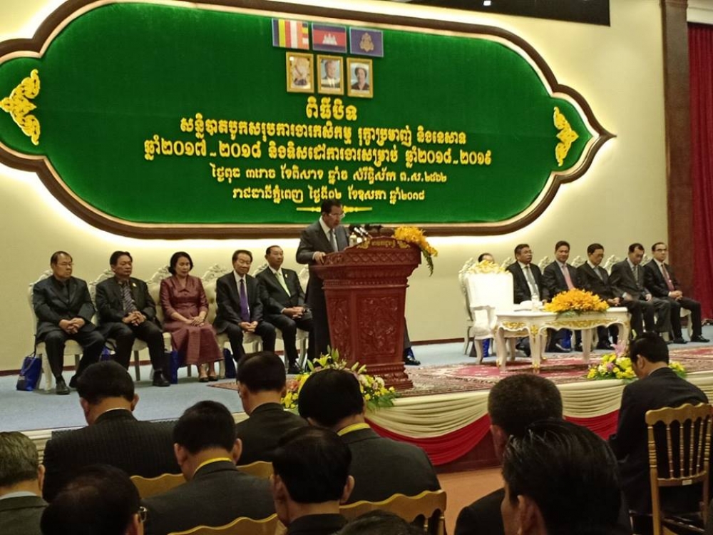 ក្នុងឱកាសដ៏វិសេសវិសាលនេះ តាងនាមថ្នាក់ដឹកនាំ និងមន្រ្តីរាជការគ្រប់ជាន់ថ្នាក់ នៃក្រសួងកសិកម្ម រុក្ខាប្រមាញ់ និងនេសាទ ឯកឧត្តមពិតជាមានសេចក្តីសោមនស្សរីករាយជាអតិបរមា សូមថ្លែងអំណរគុណយ៉ាងជ្រាលជ្រៅជាទីបំផុតចំពោះវត្តមានដ៏ឧត្តុង្គឧត្តមរបស់ សម្តេចអគ្គមហាសេនាបតីតេជោ ហ៊ុន សែន នាយករដ្ឋមន្រ្តីនៃព្រះរាជាណាចក្រកម្ពុជា និងសូមទទួលយករាល់អនុសាសន៍ដ៏ខ្ពង់ខ្ពស់របស់ សម្តេចអគ្គមហាសេនាបតីតេជោ ហ៊ុន សែន នាយករដ្ឋមន្ត្រីនៃព្រះរាជាណាចក្រកម្ពុជា ដើម្បីអនុវត្តការងារបន្តឲ្យបានសម្រេចនៅក្នុងឆ្នាំ២០១៨-២០១៩ នេះ ប្រកបដោយផ្លែផ្កា និងទទួលបានជោគជ័យដ៏ត្រចះត្រចង់ថែមទៀត។