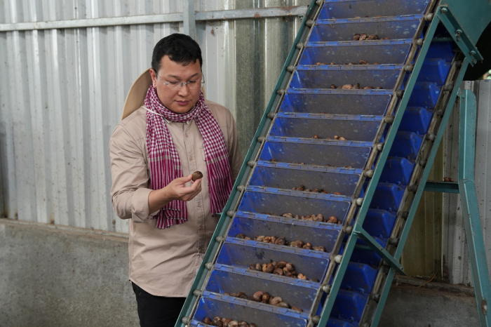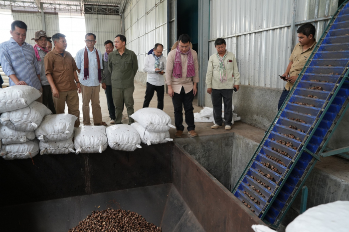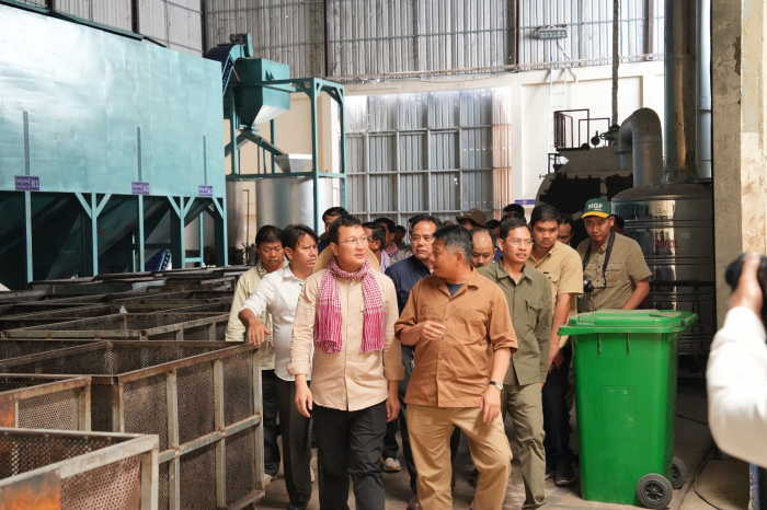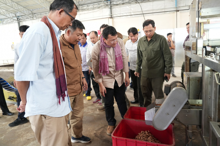 នាឱកាសនោះ ឯកឧត្តមបានជួបសំណេះសំណាលជាមួយតំណាងក្រុមហ៊ុន និងធ្វើពិនិត្យមើលច្រវាក់ប្រតិបត្តិការរោងចក្រខ្នាតធំរបស់ក្រុមហ៊ុន ដែលមានសមត្ថភាព និងស្តង់ដារខ្ពស់រួចជាស្រេច ក្នុងការស្តុកទុក និងកែច្នៃគ្រាប់ស្វាយចន្ទីស្រស់រហូតដល់១ម៉ឺនតោន។ ក្នុងនោះមានចាប់ពីដំណាក់កាលស្តុកទុក ស្ងោរ សម្ងួត បកសម្បក រែង រហូតដល់វិចខ្ចប់។