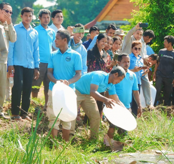 នៅថ្ងៃទី៧ ខែតុលា ឆ្នាំ២០២៤ ឯកឧត្តម ឃុន សាវឿន រដ្ឋលេខាធិការក្រសួងកសិកម្ម រុក្ខាប្រមាញ់ និងនេសាទ បានដឹកនាំយកអំណោយកូនត្រី និងមេពូជ ដែលជាអំណោយឯកឧត្ដមរដ្ឋមន្ត្រី ឌិត ទីណា មកប្រគល់ជូនរដ្ឋបាលស្រុកវ៉ារិន ខេត្តសៀមរាប ក្នុងពិធីលែងកូនត្រី នៅសហគមន៍អភិរក្សត្រីពូជ ត្រពាំងតាត្រាវ ស្ថិតនៅភូមិទួលរមៀត ឃុំវ៉ារិន ស្រុកវ៉ារិន ខេត្តសៀមរាប និងពិធីដាំកូនឈើ។