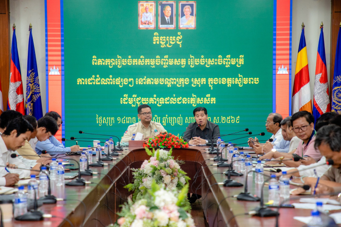 នៅថ្ងៃ១៩ ខែធ្នូ ឆ្នាំ២០២៥ ឯកឧត្តម ឃុន សាវឿន រដ្ឋលេខាធិការក្រសួងកសិកម្ម រុក្ខាប្រមាញ់ និងនេសាទ អញ្ជើញដឹកនាំកិច្ចប្រជុំជាមួយ លោក អ៉ឹង គឹមលាង អភិបាលរងខេត្តសៀមរាប ដើម្បីពិភាក្សាលើគម្រោងផែនការគាំទ្រដល់ផលិតកម្មកសិកម្មសម្រាប់ផ្តល់ជូនកងទ័ព និងប្រជាជនភៀសសឹក ក្នុងខេត្តសៀមរាប ដោយមានការចូលរួមពីលោក ប៉ែន ប៊ុនធឿន អនុប្រធានមន្ទីរកសិកម្មខេត្ត និងសហការីពាក់ព័ន្ធ អាជ្ញាធរមូលដ្ឋាន អង្គការដៃគូ និងក្រុមហ៊ុនវិស័យឯកជននានា។