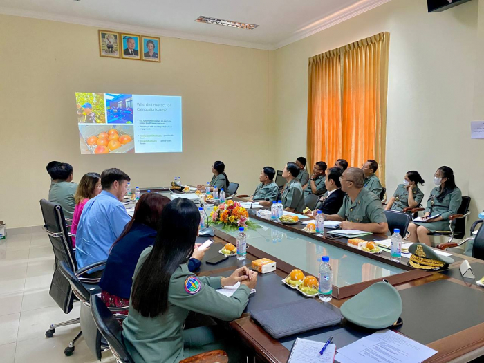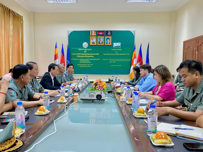 នៅអគ្គនាយកដ្ឋានកសិកម្ម នាថ្ងៃទី២៧ ខែមេសា ឆ្នាំ២០២៣ ឯកឧត្តមបណ្ឌិត ងិន ឆាយ ប្រតិភូរាជរដ្ឋាភិបាលកម្ពុជាទទួលបន្ទុកជាអគ្គនាយក នៃអគ្គនាយកដ្ឋានកសិកម្ម បានទទួលជួបពិភាក្សាការងារជាមួយក្រុមអ្នកជំនាញការ USDA-APHIS ដែលដឹកនាំដោយលោក John Hurley ប្រធាន USDA-APHIS ថ្នាក់តំបន់ ក្នុងគោលបំណងពិភាក្សាអំពីការធ្វើពាណិជ្ជកម្មផលិតផលកសិកម្មអាទិភាព និងកិច្ចសហប្រតិបត្តិការបច្ចេកទេសនៅក្នុងផ្នែកសុខភាពរុក្ខជាតិ (Plant Health) រវាងអង្គភាពជាតិការការពាររុក្ខជាតិនៃព្រះរាជាណាចក្រកម្ពុជា (NPPO of Cambodia) និងអង្គភាពជាតិការការពាររុក្ខជាតិនៃសហរដ្ឋអាមេរិក (NPPO of USA) ដែលមានការចូលរួមពី តំណាងស្ថានទូតសហរដ្ឋអាមេរិកប្រចាំព្រះរាជាណាចក្រកម្ពុជា ថ្នាក់ដឹកនាំនិងមន្រ្តីនៃនាយកដ្ឋានការពារដំណាំ អនាម័យ និងភូតគាមអនាម័យសរុបចំនួន ៣០រូប។