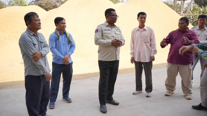 ឯកឧត្តមរដ្ឋលេខាធិការ ឃុន សាវឿន អញ្ជើញដឹកនាំក្រុមការងារចុះពិនិត្យការប្រមូលផលស្រូវប្រាំងរបស់ប្រជាកសិករ និងដេប៉ូធ្វើអាជីវកម្មថ្នាំ និងជីកសិកម្ម ស្ថិតនៅខេត្តសៀមរាប