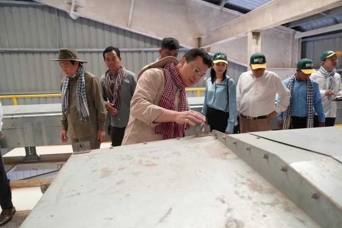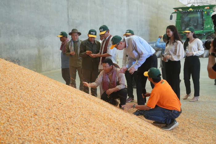 ក្រោយបញ្ចប់សុន្ទរកថាសំណេះសំណាល ឯកឧត្តមរដ្ឋមន្រ្តី បានអញ្ជើញទៅពិនិត្យការសាងសង់ឃ្លាំងស្តុក និងម៉ាស៊ីនកែច្នៃផលពោតដែលប្រមូលបាន និងស្វែងយល់ពីការរៀបចំហេដ្ឋារចនាសម្ព័ន្ធដាំដុះ ប្រព័ន្ធស្រោចស្រពទឹក ការប្រើប្រាស់គ្រឿងចក្រដើរដោយប្រព័ន្ធបច្ចេកវិជ្ជាស្វ័យប្រវត្តិដូចជា ត្រាក់ទ័រ យន្តហោះដ្រូន ដើម្បីប្រតិបត្តិការស្រោចស្រពទឹក ដាក់ជី បាញ់ថ្នាំការពារសត្វល្អិតចង្រៃ ព្យាបាលជំងឺដំណាំ និងប្រមូលផលដោយការប្រើប្រាស់គ្រឿងចក្រស្វ័យប្រវត្តិ ព្រមទាំងមធ្យោបាយដាំដុះដំណាំដែលអាចរក្សាគុណភាពដីប្រកបដោយនិរន្តរភាពផងដែរ។