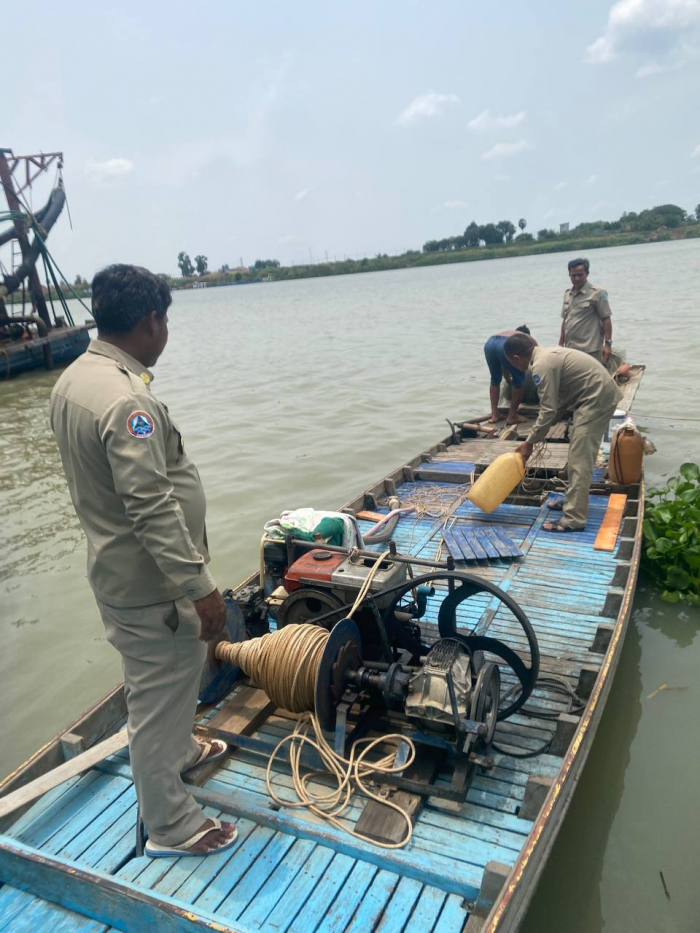 កម្លាំងអធិការដ្ឋានរដ្ឋបាលជលផលចតុមុខ បង្ក្រាបបទល្មើសនេសាទ នៅចំណុចភូមិព្រែកតាមាក់ ឃុំព្រែកតាមាក់ ស្រុកខ្សាច់កណ្តាល ខេត្តកណ្តាល