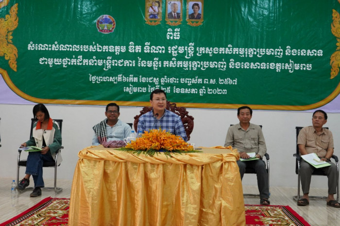 ឯកឧត្តមរដ្ឋមន្ត្រី ឌិត ទីណា ជួបសំណេះសំណាលជាមួយថ្នាក់ដឹកនាំ និងមន្ត្រីរាជការនៃមន្ទីរកសិកម្ម រុក្ខាប្រមាញ់ និងនេសាទ ខេត្តសៀមរាប