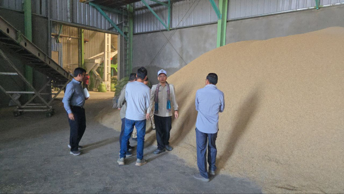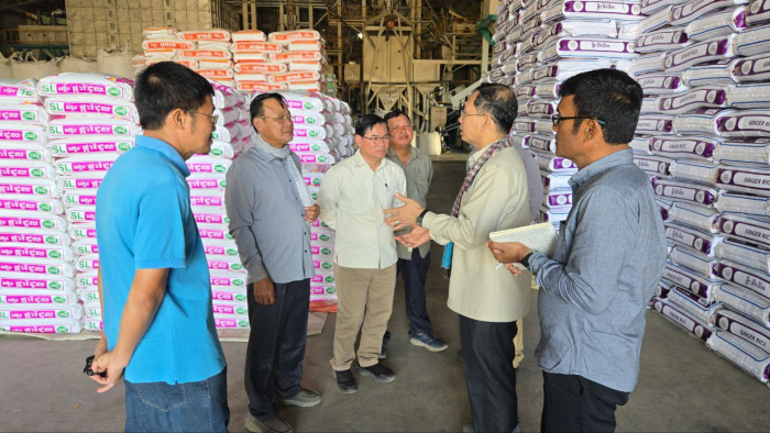 នាឱកាសនេះ​ ឯកឧត្តមរដ្ឋលេខាធិការ បានជួបសំណេះសំណាលជាមួយប្រជាកសិករ និងម្ចាស់រោងម៉ាស៊ីនកិនស្រូវមួយចំនួនដូចជា ទី១ រោងម៉ាស៊ីន១៦៨៨ មានលទ្ធភាពទទួលទិញស្រូវអូអឹម​ ៥៤៥១ ថ្លៃ៨០០-៨២០រៀល/គីឡូក្រាម អាចសម្ងួតបា​ន​ ៥០០តោន/ថ្ងៃ និងមានឃ្លាំងស្តុកទុកបានចំនួន​ ១២ ០០០តោន។ ទី២​ រោងម៉ាស៊ីនកិនស្រូវ ងួន ហុង មានលទ្ធភាពទទួលទិញស្រូវអូអឹម​ ៥៤៥១ ថ្លៃ៨០០រៀល/គីឡូក្រាម អាចសម្ងួតបាន​ ៥០០ តោន/ថ្ងៃ និងមានឃ្លាំងស្តុកទុកបានចំនួន​ ២មុឺនតោន​ ។​ ទី៣​ រោងម៉ាស៊ីនកិនស្រូវ Amru Rice មានលទ្ធភាពទទួលទិញស្រូវអូអឹម​ ៥៤៥១ ថ្លៃ​៨២០រៀល/គីឡូក្រាម អាចសម្ងួតបាន​ ៥០០ តោន/ថ្ងៃ និងមានឃ្លាំងស្តុកទុកបានចំនួន​ ២ម៉ឺនតោន និងទី៤​ រោងម៉ាស៊ីន BRM មានលទ្ធភាពទទួលទិញស្រូវអូអឹម​ ៥៤៥១​ ចំនួន ៨៣០រៀល/គីឡូក្រាម អាចសម្ងួតបាន​ ៥៥០ តោន/ថ្ងៃ និងមានឃ្លាំងស្តុកទុកបានចំនួន២ម៉ឺនតោន។