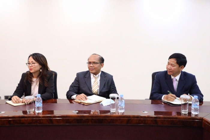 នៅទីស្នាក់ការក្រសួងកសិកម្ម រុក្ខាប្រមាញ់ និងនេសាទ នាវេលាម៉ោង១៤:៣០ នាទីរសៀល ថ្ងៃអង្គារ ១២កើត ខែអស្សុជ ឆ្នាំជូត ទោស័ក ព.ស ២៥៦៤ ត្រូវនឹងថ្ងៃទី២៩ ខែកញ្ញា ឆ្នាំ២០២០ ឯកឧត្តមរដ្ឋមន្ត្រី វេង សាខុន បានទទួលជួបលោកស្រី Claire Conan នាយកថ្មីនៃកម្មវិធីស្បៀងអាហារពិភពលោកប្រចាំព្រះរាជាណាចក្រកម្ពុជា (World Food Programme) ដើម្បីពង្រឹង និងពង្រីកកិច្ចសហប្រតិបត្តិការរវាងភាគីទាំងពីរ។