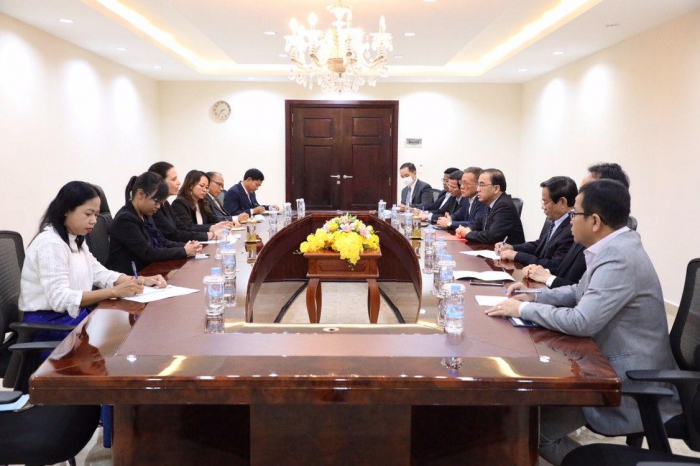 ជាបឋម ឯកឧត្តមដ្ឋមន្ត្រីបានស្វាគមន៍ និងអបអរសាទរចំពោះលោកស្រី ដែលត្រូវបានកម្មវិធីស្បៀងអាហារពិភពលោកផ្តល់ការគាំទ្រ និងតែងតាំងជានាយកកម្មវិធីថ្មីប្រចាំកម្ពុជា។ ហើយក្នុងឱកាសនេះផងដែរ តាមរយៈលោកស្រី ឯកឧត្តមដ្ឋមន្ត្រីក៏ថ្លែងអំណរគុណចំពោះកម្មវិធីស្បៀងអាហារពិភពលោកដែលបាន និងកំពុងផ្តល់កិច្ចសហប្រតិបត្តិការផ្នែកមនុស្សធម៌ សំដៅកាត់បន្ថយ និងលប់បំបាត់ភាពអត់ឃ្លាន និងលើកកម្ពស់អាហារូបត្ថម្ភទូទាំងពិភពលោក រួមទាំងកម្ពុជាផងដែរ។ ឯកឧត្តមរដ្ឋមន្ត្រីបន្ថែមថា ក្រោមការដឹកនាំរបស់ប្រមុខរាជរដ្ឋាភិបាល កម្ពុជាមានសុខសន្តិភាព និងស្ថិរភាពនយោបាយពេញលេញ ដែលសមិទ្ធផលដ៏ប្រពៃនេះបានរុញច្រានកម្ពុជាពីប្រទេសដែលអសន្តិសុខស្បៀងសម្រាប់ប្រជាជនខ្លួន ទៅជាប្រទេសដែលមានអតិរេកស្បៀង និងកំពុងធ្វើការនាំចេញផលិតផលកសិកម្មទៅបណ្តាលប្រទេសជាច្រើនផងដែរ។ ពាក់ព័ន្ធនឹងកម្មវិធីគាំទ្រក្នុងវិស័យកសិកម្ម ឯកឧត្តមរដ្ឋមន្ត្រីក៏បានវាយតម្លៃខ្ពស់ចំពោះកិច្ចខិតខំប្រឹងប្រែងរបស់កម្មវិធីស្បៀងអាហារពិភពលោក ដែលបានជួយគាំទ្រក្នុងការរៀបចំប្រព័ន្ធព័ត៌មានទីផ្សារ។ ទន្ទឹមនឹងនេះ ឯកឧត្តមរដ្ឋមន្ត្រីបានបន្ថែមថា ពាក់ព័ន្ធនឹងអាហារូបត្ថម្ភនៅកម្ពុជា គឺបាននឹងកំពុងមានការវិវឌ្ឍន៍ទៅមុខល្អប្រសើរ ដោយបច្ចុប្បន្ននេះកម្ពុជាមានកសិដ្ឋានចិញ្ចឹមគោយកទឹកដោះ និងផលិតទឹកដោះគោដែលមានសារជាតិបំប៉នខ្ពស់សម្រាប់ប្រជាជន ជាពិសេសសម្រាប់ក្មេងៗ។