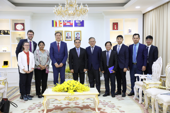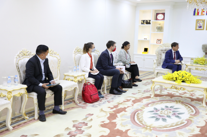 នៅទីស្តីការក្រសួងកសិកម្ម រុក្ខាប្រមាញ់ និងនេសាទ នៅវេលាម៉ោង ១៥:០០ ថ្ងៃទី២៧ ខែឧសភាឆ្នាំ២០២២ ឯកឧត្តមរដ្ឋមន្ត្រី វេង សាខុន បានទទួលជួបឯកឧត្តម Jacques PELLET ឯកអគ្គរដ្ឋទូតនៃសាធារណ:រដ្ឋបារាំង ដើម្បីសម្តែងការគួរសម និងពិភាក្សាការងារ។ មានប្រសាសន៍នាឱកាសនេះ ឯកឧត្តមរដ្ឋមន្ត្រីបានសម្តែងនូវកិច្ចស្វាគមន៍ និងអបអរសាទរក្នុងខណ:ដែលឯកឧត្តមត្រូវបានតែងតាំងជាឯកអគ្គរដ្ឋទូតនៃសាធារណ:រដ្ឋបារាំងប្រចាំព្រះរាជាណា ចក្រកម្ពុជា។ ឆ្លៀតយកឱកាសនៃជំនួបការទូតនេះ ឯកឧត្តមរដ្ឋមន្ត្រីបានជម្រាបជូនឯកឧត្តម ឯកអគ្គរដ្ឋទូតដោយសង្ខេបអំពីស្ថានភាពជារួមនៃការអភិវឌ្ឍវិស័យកសិកម្មមុនពេលពិភពលោក ក៏ដូចជាប្រទេសកម្ពុជាបានជួបបញ្ហាវិបត្តិជំងឺឆ្លងសកលកូវីដ-១៩ ជាពិសេសផលិតផលកសិកម្មសំខាន់ៗដែលមានសក្តានុពល ហើយដែលរាជរដ្ឋាភិបាលកម្ពុជាចាត់ទុកជាផលិតផលមានអាទិភាពសម្រាប់ធ្វើការនាំចេញ។ ឯកឧត្តមរដ្ឋមន្ត្រីក៏បានលើកយកបញ្ហាប្រឈមសំខាន់ៗ ដែលជាឧបសគ្គដល់ការអភិវឌ្ឍវិស័យកសិកម្ម ទាក់ទងទៅនឹងការនាំចេញផលិតផលមួយចំនួនត្រូវបានធ្លាក់ចុះ ដែលបញ្ហានេះបណ្តាលមកពីទី១- វិបត្តិជំងឺឆ្លងសកលកូវីដ-១៩ និងទី២- សង្គ្រាមរវាងរុស្សី-អ៊ុយក្រែន (ប្រេងសាំង និងតម្លៃដឹកជញ្ជូនត្រូវបានកើនឡើងទាំងក្នុងស្រុក និងអន្តរជាតិ)។ ឯកឧត្តមរដ្ឋមន្ត្រីបានបន្តទៀតថា បច្ចុប្បន្នស្ថានភាពនៃជំងឺឆ្លងនេះនៅកម្ពុជាមានលក្ខណ:ល្អប្រសើរឡើងវិញជាបណ្តើរៗ នោះក៏ដោយសារប្រមុខរាជរដ្ឋាភិបាលកម្ពុជាដែលមានសម្តេចតេជោ ហ៊ុន សែន ជានាយករដ្ឋមន្រ្តីបានដាក់ចេញនូវវិធានការសំខាន់ៗ និងបន្ទាន់ក្នុងការទប់ស្កាត់ការរីករាលដាលជំងឺឆ្លងនេះពីសហគមន៍មួយទៅសហគមន៍មួយ តាមរយ:យុទ្ធនាការចុះចាក់វ៉ាក់សាំងការពារជូនប្រជាពលរដ្ឋបានទាន់ពេលវេលា និងមានប្រសិទ្ធភាព ធ្វើឲ្យសកម្មភាពសង្គម សេដ្ឋកិច្ចជារួមចាប់ផ្តើមដំណើរដូចប្រក្រតីឡើងវិញ។ យោងលើស្ថានភាពបច្ចុប្បន្ន ឯកឧត្តមរដ្ឋមន្ត្រីបានស្នើឲ្យរដ្ឋាភិបាលបារាំង តាមរយ:ឯកឧត្តមឯកអគ្គរដ្ឋទូតថ្មីផ្តល់ឱកាសឲ្យកសិផលកម្ពុជានាំចូលទីផ្សារបារាំង និងទីផ្សារអ៊ីរ៉ុបកាន់តែច្រើនឡើងថែមទៀត ពិសេសអង្ករ។ ឯកឧត្តមរដ្ឋមន្ត្រីសង្ឃឹម និងជឿជាក់ថាក្នុងអាណត្តិការទូតរបស់ឯកឧត្តមឯកអគ្គរដ្ឋទូត ប្រទេសទាំងពីរនឹងបន្តពង្រឹងកិច្ចសហប្រតិបត្តិការល្អលើគ្រប់វិស័យ ជាពិសេសលើវិស័យកសិកម្ម និងដោយឡែកលើផលិតផលកសិកម្មដែលបានកែច្នៃហើយ និងចូលរួមចំណែកពង្រឹងសមត្ថភាពលើខ្សែច្រវាក់តម្លៃបន្ថែម ។ ទន្ទឹមនឹងនេះ ក្រសួងមានក្តីសង្ឃឹមថា ភាគីបារាំងនឹងជួយជាធនធានថវិការ និងចែករំលែកបទពិសោធន៍លើការងារគ្រប់គ្រង និងអភិរក្សធនធានព្រៃឈើ និងជលផល ហើយនិងការវារីវប្បកម្មន