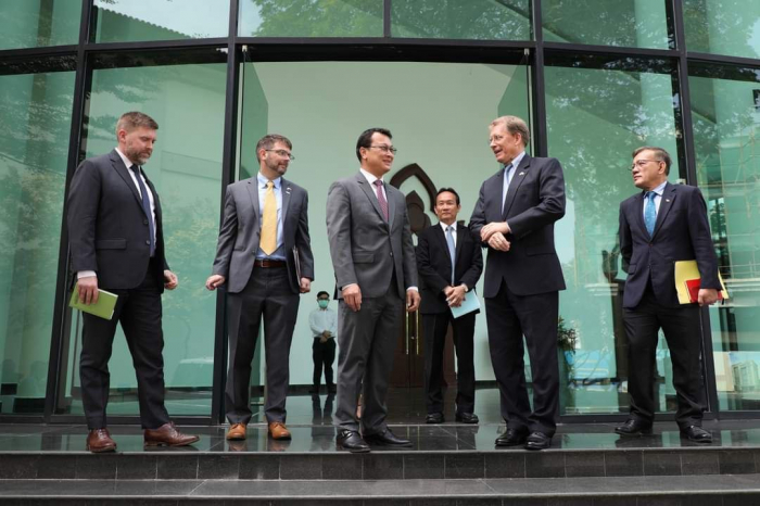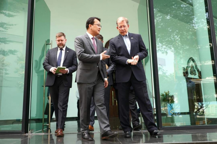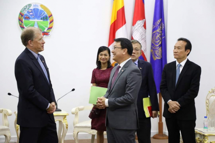 ឯកឧត្តម ឌិត ទីណា រដ្ឋមន្ដ្រីក្រសួងកសិកម្ម រុក្ខាប្រមាញ់ និងនេសាទ នៅថ្ងៃចន្ទ ទី៩ ខែមករា ឆ្នាំ២០២៣ បានបានទទួលជួបសម្ដែងការគួរសម និងពិភាក្សាការងារជាមួយឯកឧត្តម Patrick Murphy ឯកអគ្គរដ្ឋទូតសហរដ្ឋអាមេរិកប្រចាំនៅកម្ពុជា នាទីស្ដីការក្រសួងកសិកម្ម រុក្ខាប្រមាញ់ និងនេសាទ។ នៅក្នុងជំនួបនេះ ឯកឧត្តមរដ្ឋមន្ដ្រី ឌិត ទីណា បានសម្ដែងការស្វាគមន៍ចំពោះកិច្ចសហប្រតិបត្តិការរវាងអាមេរិកនិងកម្ពុជា ក្នុងវិស័យកសិកម្ម តាមរយៈកម្មវិធី USDA/USAID ដែលធ្វើការយ៉ាងជិតស្និទ្ធជាមួយអគ្គនាយកដ្ឋានកសិកម្ម អគ្គនាយកដ្ឋានជលផល និងអគ្គនាយកដ្ឋានសុខភាពសត្វនិងផលិតកម្មសត្វ ព្រមទាំងសាកលវិទ្យាល័យភូមិន្ទកសិកម្ម។ តាមរយៈកិច្ចសន្ទនារយៈពេលជាងមួយម៉ោងកន្លះប្រកបដោយលក្ខណៈស្ថាបនានិងត្រង់ទៅត្រង់មក ឯកឧត្តម ឌិត ទីណា សង្ឃឹមថា ទំនាក់ទំនងរវាងកម្ពុជានិងសហរដ្ឋអាមេរិក ជាពិសេសសនៅក្នុងវិស័យកសិកម្ម នឹងបន្តមានភាពរលូន ឬអាចឈានទៅកាន់ភាពល្អប្រសើរថែមមួយកម្រិតទៀតនាពេលអនាគត៕
