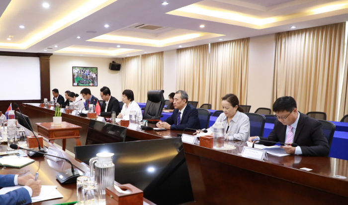 នៅក្នុងកិច្ចប្រជុំនេះ​ ឯកឧត្តមរដ្ឋលេខាធិការ បានសម្តែងនូវសេចក្តីសោមនស្សរីករាយ​ និងស្វាគមន៍​ចំពោះគណៈប្រតិភូចិនក្នុងការចាប់អារម្មណ៍ក្នុងវិស័យកសិកម្មកម្ពុជា។​ លេីសពីនេះ​ ឯកឧត្តម​ បានបញ្ជាក់បន្ថែមថា​ កម្ពុជាបេីកទូលាយសម្រាប់អ្នកវិនិយោគ​ដែលចង់វិនិយោគលេីការកែច្នៃ​ សម្រាប់នាំចេញទៅទីផ្សារអន្តរជាតិ​ ហេីយកម្ពុជាមានកសិផលសក្តានុពលជាច្រេីនដូចជា​ ស្រូវអង្ករ​ ស្វាយ​ ស្វាយចន្ទី​ មៀន​ ចេកជាដេីម។