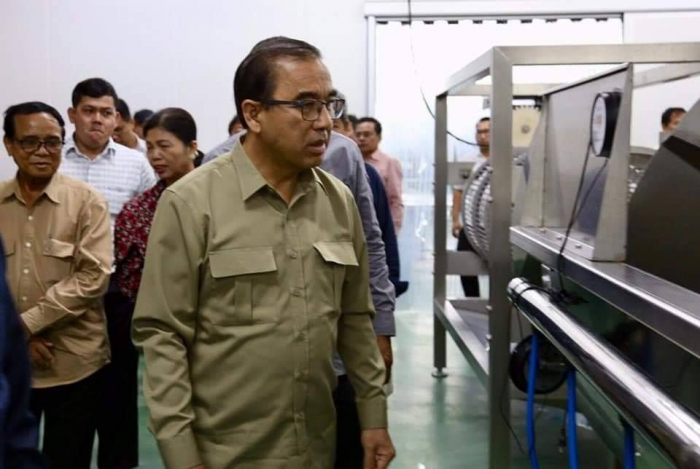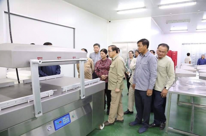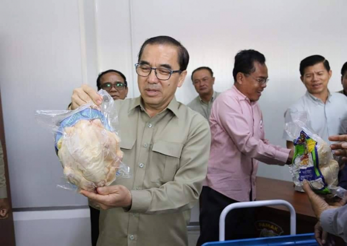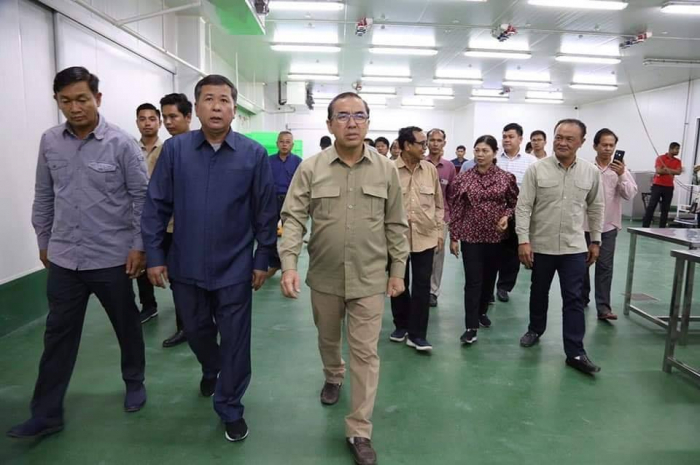 បន្ទាប់ពីបានអញ្ជើញពិនិត្យខ្សែច្រវាក់ផលិតកម្មក្នុងសត្តឃាតដ្ឋាន និងស្តាប់ការអត្ថាធិប្បាយអំពី ការអនុវត្តបច្ចេកទេសពិឃាត បោចរោម យកគ្រឿងក្នុងចេញ លាងសំអាត និងបញ្ចូលក្នុងបន្ទប់ ត្រជាក់។ល។ រួចមក លោករដ្ឋមន្រ្តី បានសម្តែងនូវទឹកចិត្តអបអរសាទរ និងវាយតម្លៃខ្ពស់ចំពោះការ ចូលរួមវិនិយោគសាងសង់សត្តឃាតដ្ឋានមាន់មួយនេះឡើងក្នុងខេត្តកំពត ដែលបំពាក់ដោយឧបការណ៍បច្ចេកទេសទំនើបទាន់សម័យ ធានាបានអនាម័យ គុណភាព និងសុវត្ថិភាពលើផលិត ផលសាច់ឆ្លើយតបបានយ៉ាងពេញលេញតាមតម្រូវការទីផ្សារ និងតម្រូវចិត្តអ្នកបរិភោគ ដែលតែង តែគិត និងបារម្ភអំពីគុណភាពសាច់ខ្វះអនាម័យនាពេលបច្ចុប្បន្ន។ លោកបានបញ្ជាក់បន្ថែមដោយបង្កប់ន័យជឿជាក់លើការដឹកនាំរបស់រាជរដ្ឋាភិបាលដែលមានសម្តេចតេជោជានាយករដ្ឋមន្រ្តី ធ្វើឲ្យប្រទេសជាតិមានសុខសន្តិភាព ស្ថិរភាព និងការអភិវឌ្ឍ ហើយពិតណាស់សមិទ្ធផលដ៏មាន តម្លៃនេះគឺជាកត្តាចំបងក្នុងការលើកទឹកចិត្ត និងចូលរួមយ៉ាងសស្រាក់សស្រាំពីវិស័យឯកជនអភិវឌ្ឍប្រទេសតាមរយ:ការដាក់ទុនវិនិយោគលើគ្រប់វិស័យ និងជាពិសេសវិស័យកសិកម្ម ជាក់ ស្តែងក្រុមហ៊ុន ហ្រ្គេន ហុង យាន អេឃ្វើខលឈ័រ (ខេមបូឌា) ឯ.ក ដាក់ទុនវិនិយោគកសិដ្ឋានចិញ្ចឹមបង្គានៅស្រុកទឹកឈូ និងក្រុមហ៊ុន 3PLE FARM ដាក់ទុនវិនិយោគបង្កើតសត្តឃាតដ្ឋានមាន់ នៅស្រុកជុំគីរី ដែលកសិដ្ឋានទាំងពីរកើតលើទឹកដីខេត្តកំពត។ ជាងនេះទៅទៀត លោកបានបញ្ជាក់ថា ការចូលរួមពីវិស័យឯកជន ពិតជាបានចូលរួមចំណែកបង្កើតការងារជូនប្រជាពលរដ្ឋនៅមូលដ្ឋាន បង្កើនចំណូលក្នុងគ្រួសារ និងកាត់បន្ថយភាពក្រីក្រ ជាពិសេសចូលរួមអភិវឌ្ឍវិស័យផលិតកម្មសាច់មាន់ដែលក្រសួងទាមទារចង់បាន។