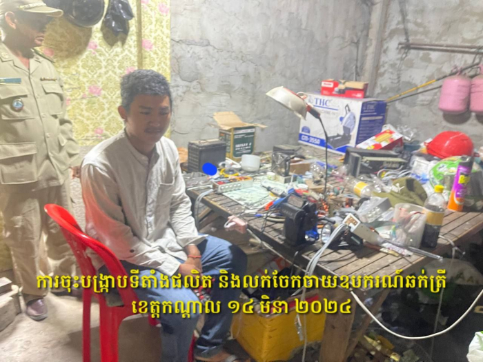នៅថ្ងៃទី១៤ ខែមីនា ឆ្នាំ២០២៤ សមត្ថកិច្ចជលផល នៃអធិការដ្ឋានរដ្ឋបាលជលផលចតុមុខ និងអធិការដ្ឋានរដ្ឋបាលជលផលមេគង្គ សហការជាមួយខណ្ឌរដ្ឋបាលជលផលកណ្តាល ដឹកនាំដោយព្រះរាជអាជ្ញារងខេត្តកណ្តាលបានចុះបង្ក្រាបទីតាំងផលិត និងលក់ចែកចាយឧបករណ៍ឆក់ត្រី១កន្លែង នៅភូមិដំរីឆ្លង ឃុំស្អាងភ្នំ ស្រុកស្អាង ខេត្តកណ្តាល ដែលបានលក់ចែកចាយតាមបណ្តាញសង្គម TikTok ដាក់ឈ្មោះថា ជាងរិទ្ធ។ ការចុះបង្ក្រាបនេះ សមត្ថកិច្ចឃាត់ខ្លួនបានជនសង្ស័យ១នាក់ និងដកហូតបានវត្ថុតាង រួមមាន ឧបករណ៍ឆក់ចំនួន៦គ្រឿង និងសម្ភារៈផលិតឧបករណ៍ឆក់មួយចំនួនទៀត។ ករណីនេះ សមត្ថកិច្ចកំពុងកសាងសំណុំរឿងដើម្បីបញ្ជូនជនសង្ស័យទៅតុលាការ តាមនិតិវិធីច្បាប់។