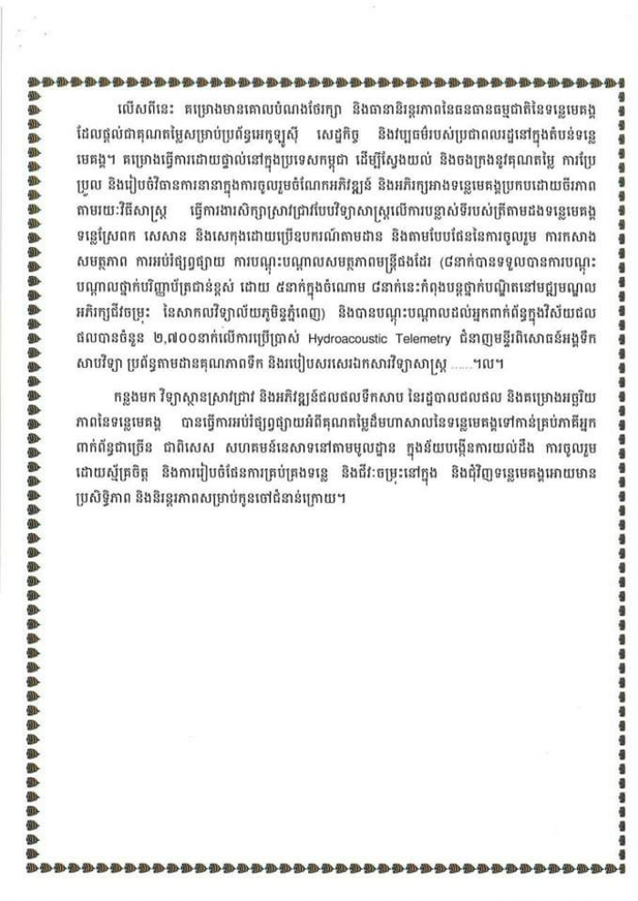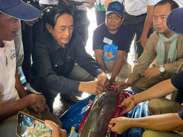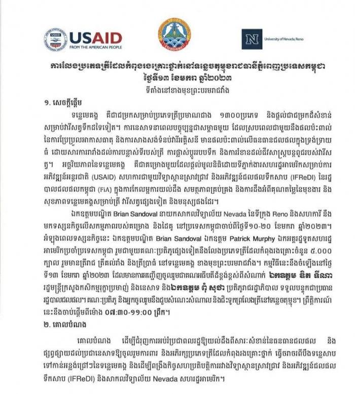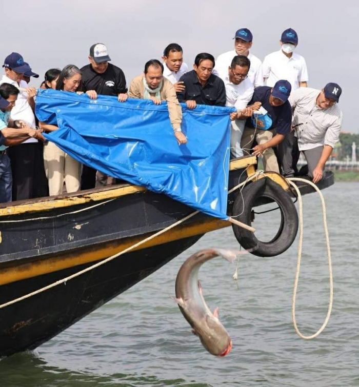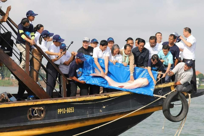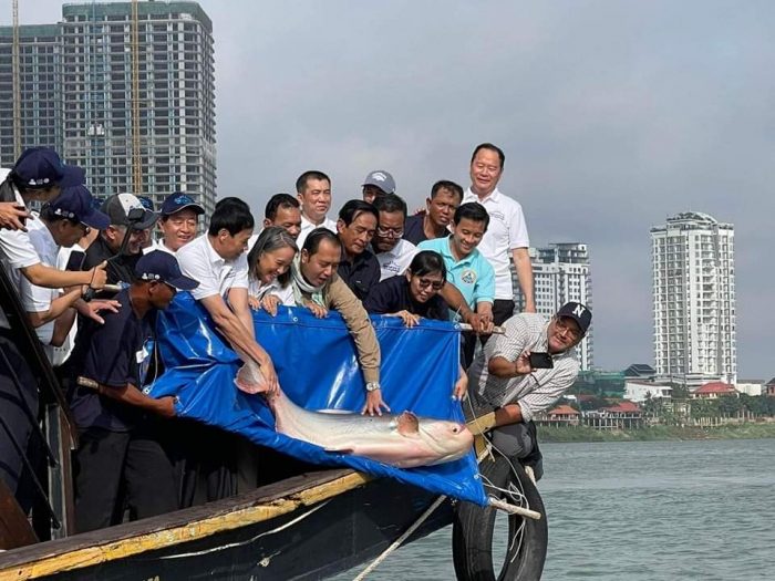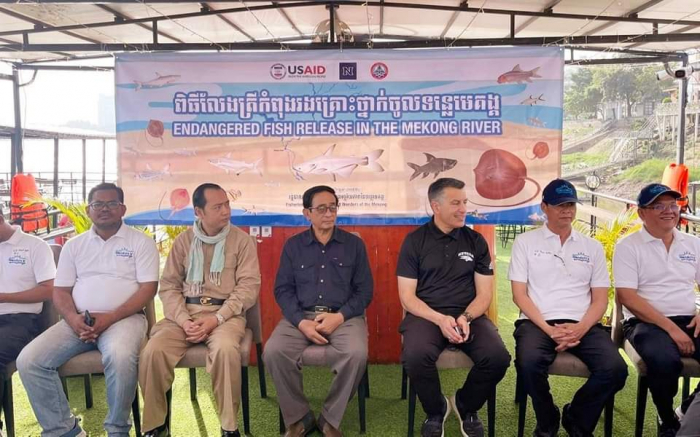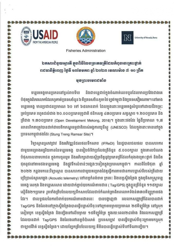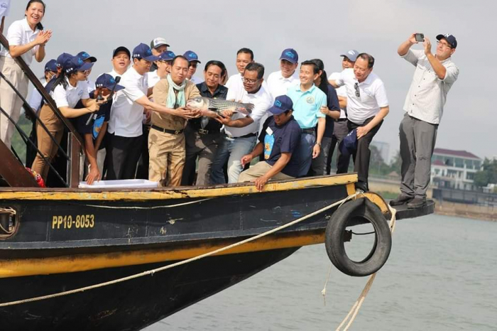 ឯកឧត្តម ហាស សារ៉េត រដ្ឋលេខាធិការ នៃក្រសួងកសិកម្ម រុក្ខាប្រមាញ់ និងនេសាទ បានអញ្ជើញជាអធិបតីភាពក្នុងពិធីប្រលែងពូជត្រីដែលរងគ្រោះថ្នាក់និងជិតផុតពូជនៅតាមដងទន្លេមេគង្គ