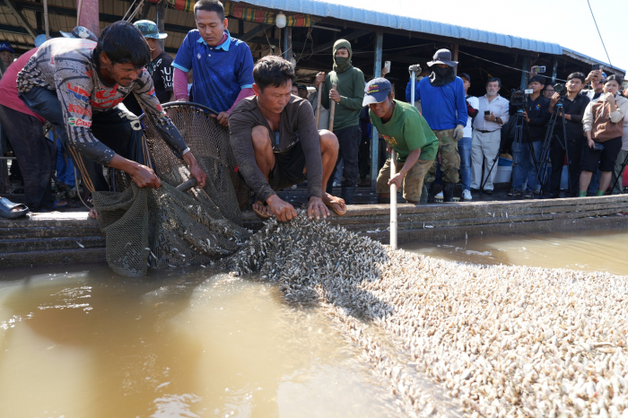 នៅព្រឹកថ្ងៃទី០៩ ខែមករា ឆ្នាំ២០២៥ ឯកឧត្តម ឌិត ទីណា រដ្ឋមន្ត្រីក្រសួងកសិកម្ម រុក្ខាប្រមាញ់ និងនេសាទ រួមដំណេីរជាមួយឯកឧត្តមឯកអគ្គរដ្ឋទូតចិន ក្រុមសហភាពអឺរ៉ុប និងអង្គការស្បៀងនិងកសិកម្មនៃសហប្រជាជាតិ (FAO) បានចុះទស្សនកិច្ចពិនិត្យការប្រមូលផលត្រីប្រហុកនៅដាយត្រីលេខ១៥ ស្ថិតក្នុងភូមិតាពៅ ឃុំកោះចិន ស្រុកពញាឮ ខេត្តកណ្តាល។