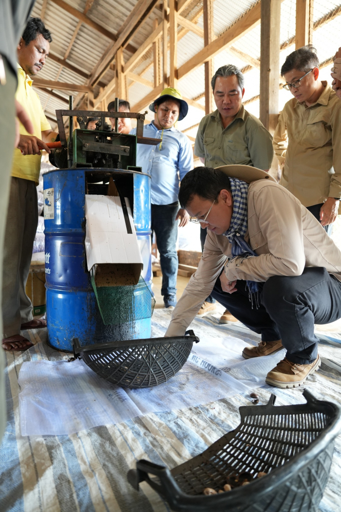 ក្នុងដំណើរទស្សនកិច្ចនេះ ឯកឧត្តមរដ្ឋមន្រ្តីបានលើកទឹកចិត្តដល់ម្ចាស់ក្រុមហ៊ុនរិះរកវិធីកាត់បន្ថយថ្លៃដើមក្នុងការកែច្នៃគ្រាប់ស្វាយចន្ទី និងស្វែងយល់ពីបញ្ហាប្រឈមផ្សេងៗរបស់ម្ចាស់ដំណាំពាក់ព័ន្ធគុណភាពដី ការប្រឈមបម្រែបម្រួលអាកាសធាតុ ការយាយីពីសត្វល្អិតចង្រៃ និងជំងឺផ្សេងៗជាដើម ដើម្បីស្វែងរកដំណោះស្រាយសមស្របណាមួយ។