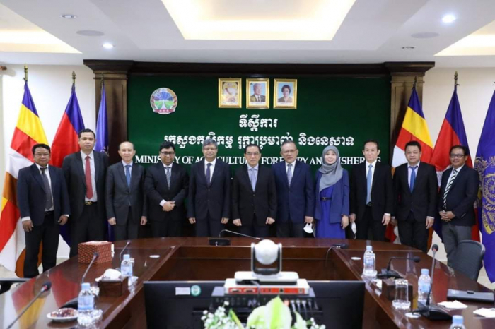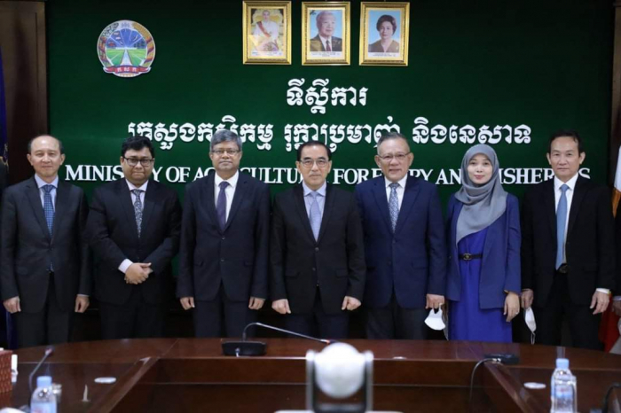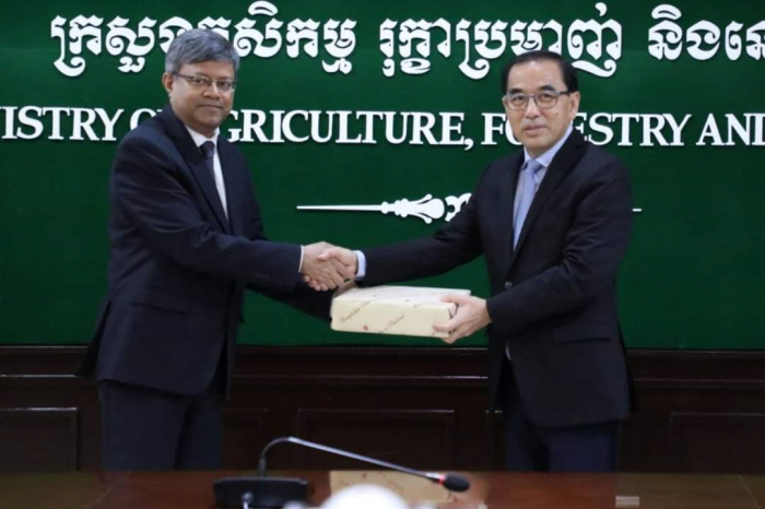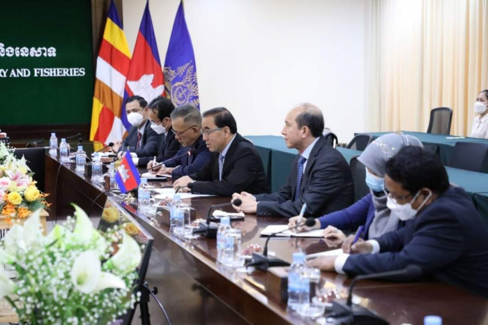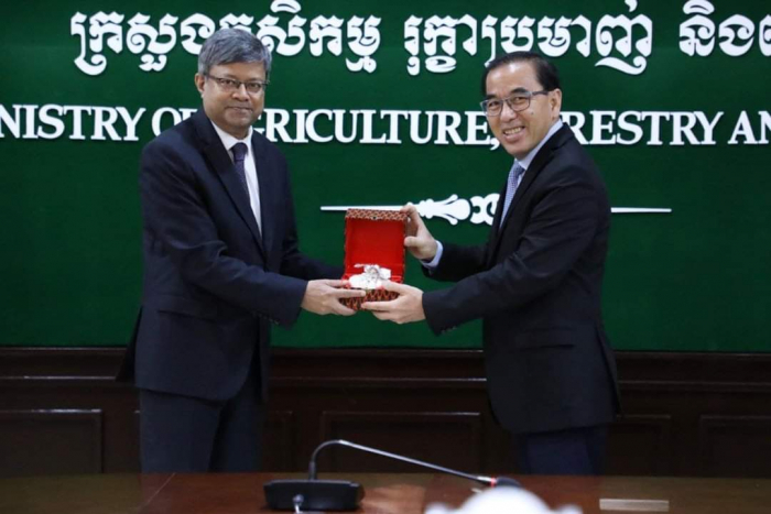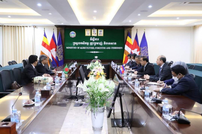 នៅទីស្តីការក្រសួងកសិកម្ម រុក្ខាប្រមាញ់ និងនេសាទ នាវេលាម៉ោង ១៥:០០ រសៀលថ្ងៃចន្ទ ១០រោច ខែស្រាពណ៍ ឆ្នាំខាល ចត្វាស័ក ព. ស ២៥៦៦ ត្រូវនឹងថ្ងៃទី២២ ខែសីហា ឆ្នាំ២០២២ ឯកឧត្តមរដ្ឋមន្រ្តី វេង សាខុន បានជួបពិភាក្សាការងារជាមួយឯកឧត្តម Mohammed Abdul Hye ឯកអគ្គរដ្ឋទូតនៃសាធារណរដ្ឋប្រជាមានិតបង់ក្លាដែសប្រចាំព្រះរាជាណាចក្រកម្ពុជា ដែលមាននិវេសនដ្ឋាននៅទីក្រុងបាងកក ដើម្បីជំរុញការនាំចេញអង្ករកម្ពុជាទៅកាន់ទីផ្សារបង់ក្លាដែស។ ជាកិច្ចចាប់ផ្តើម ឯកឧត្តមរដ្ឋមន្ត្រីបានស្វាគមន៍ និងវាយតម្លៃខ្ពស់ចំពោះគោលបំណងនៃកិច្ចប្រជុំនារសៀលនេះ ដើម្បីរួមគ្នាពង្រីកកិច្ចសហប្រតិបត្តិការរវាងប្រទេសទាំងពីរលើការនាំចេញអង្ករកម្ពុជាទៅកាន់បង់ក្លាដែសតាមស្មារតីនៃកិច្ចប្រជុំរវាងសម្ដេចអគ្គមហាសេនាបតីតេជោ ហ៊ុន សែន នាយករដ្ឋមន្ត្រីនៃព្រះរាជាណាចក្រកម្ពុជា និងឯកឧត្តមបណ្ឌិត A.K Abdul Momen រដ្ឋមន្ត្រីការបរទេសនៃសាធារណរដ្ឋប្រជាមានិតបង់ក្លាដែសកាលពីថ្ងៃទី១៥ ខែកក្កដា ឆ្នាំ២០២២។ ឯកឧត្តមបន្ថែមថា ក្រោមការដឹកនាំរបស់សម្តេចតេជោ វិស័យកសិកម្មមានការរីកចម្រើនជាបន្តបន្ទាប់ ជាពិសេសពីប្រទេសដែលអសន្តិសុខស្បៀងសម្រាប់ផ្គត់ផ្គង់ប្រជាជនខ្លួន មកជាប្រទេសដែលសល់អតិរេកស្បៀងជាង ៦លានតោន និងកំពុងជំរុញការកែច្នៃ វេចខ្ចប់ប្រកបដោយគុណភាព និងសុវត្ថិភាព ដើម្បីធ្វើការនាំចេញ។ ដូច្នេះហើយ ឯកឧត្តមជឿជាក់ថា ភាគីកម្ពុជាមានលទ្ធភាពគ្រប់គ្រាន់ក្នុងការបំពេញតម្រូវការអង្កររបស់ភាគីបង់ក្លាដែស។ ឯកឧត្តមឯកអគ្គរដ្ឋទូតបានថ្លែងអំណរគុណយ៉ាងជ្រាលជ្រៅចំពោះពេលវេលា និងការទទួលស្វាគមន៍ពីសំណាក់ឯកឧត្តមរដ្ឋមន្ត្រី និងសហការី។ ឯកឧត្តមបន្ថែមថា បើទោះបីវិស័យកសិកម្មបង់ក្លាដែស ជាពិសេសផលិតកម្មស្រូវមានការកើនឡើងតាមរយៈការបង្កើនរដូវដាំដុះរហូតដល់ទៅ៣ដង គិតពីឆ្នាំ១៩៧១ មកដល់បច្ចុប្បន្នយ៉ាងណាក្តី ក៏ការផ្គត់ផ្គង់ មិនទាន់ធានាដល់សន្តិសុខស្បៀងសម្រាប់ប្រជាជនបង់ក្លាដែស ចំនួនជាង ១៦០លាននាក់ ដែលបង់ក្លាដែសត្រូវការនាំចូលអង្ករពី ១លាន ទៅ ១,៥លានតោនជារៀងរាល់ឆ្នាំ។ ហេតុនេះ ឯកឧត្តមសង្ឃឹមថា កិច្ចប្រជុំនារសៀលនេះ នឹងអាចផ្តល់ឱកាសឱ្យភាគីបង់ក្លាដែសយល់ច្បាស់អំពីយន្តការ និងលក្ខខណ្ឌតម្រូវដើម្បីរួមគ្នាពង្រីកកិច្ចសហប្រតិបត្តិការរវាងប្រទេសទាំងពីរលើការនាំចេញអង្ករកម្ពុជាទៅបង់ក្លាដែស។ ជាការឆ្លើយតប ឯកឧត្តមរដ្ឋមន្ត្រីបញ្ជាក់ថា ដើម្បីឱ្យការងារនេះទទួលបានជោគជ័យ គឺមានពីរជម្រើសសម្រាប់ភាគីបង់ក្លាដែសពិនិត្យ និងពិចារណា។ ទី១ ប្រើប្រាស់យន្តការដែលមានរួចជាស្រេច គឺសំដៅទៅលើការធ្វើកិច្ចសហការជាមួយសហព័ន្ធស្រូវអង្ករកម្ពុជាដែលមានសមត្ថភាព និងលទ្ធភាពអាចផ្គ