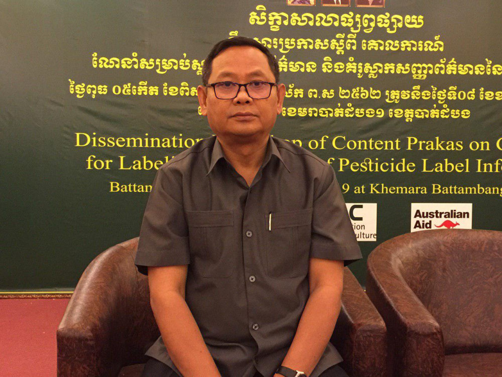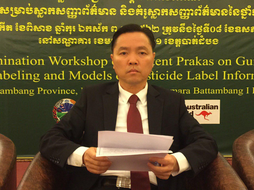 នៅព្រឹកថ្ងៃពុធ ០៥កើត ខែពិសាខ ឆ្នាំកុរ ឯកស័ក ព.ស ២៥៦២ ត្រូវនិងថ្ងៃទី០៨ ខែឧសភា ឆ្នាំ២០១៩ នាយកដ្ឋាននីតិកម្មកសិកម្មបានរៀបចំសិក្ខាសាលាផ្សព្វផ្សាយខ្លឹមសារប្រកាសស្តីពី គោលការណ៍ណែនាំសម្រាប់ស្លាកសញ្ញាព័ត៌មាន និងគំរូស្លាកសញ្ញាព័ត៌មាននៃថ្នាំកសិកម្ម ក្រោមអធិបតីភាពឯកឧត្តម គឹម សុន រដ្ឋលេខាធិការក្រសួងកសិកម្ម រុក្ខាប្រមាញ់ និងនេសាទ លោក ភុំ រ៉ា ប្រធាននាយកដ្ឋាននីតិកម្មកសិកម្ម នៅសណ្ឋាគារខេត្តបាត់ដំបង ដែលឧបត្ថមគាំទ្រដោយអង្គការ CAVAC ។