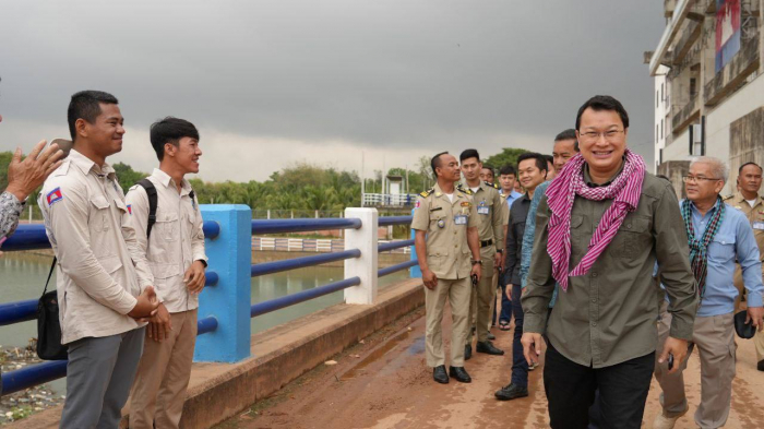 ឯកឧត្តម ឌិត ទីណា​ រដ្ឋមន្ត្រី​ក្រសួងកសិកម្ម រុក្ខាប្រមាញ់ និងនេសាទ និងថ្នាក់ដឹកនាំ​ បានចុះពិនិត្យស្ថានភាពទំនប់ប្រព័ន្ធស្រោចស្រពកង្ហត​ នៅស្រុកបាណន់​ ខេត្តបាត់ដំបង