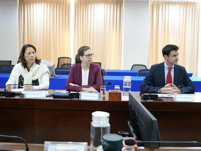 នៅព្រឹកថ្ងៃទី២២ ខែវិច្ឆិកា ឆ្នាំ២០២៣ ឯកឧត្តម ឌិត ទីណា រដ្ឋមន្ត្រីក្រសួងកសិកម្ម រុក្ខាប្រមាញ់ និងនេសាទ និងថ្នាក់ដឹកនាំ បានជួបពិភាក្សាការងារជាមួយក្រុមការងារសហភាពអឺរ៉ុប (EU) អំពីកិច្ចសហប្រតិបត្តិការក្នុងវិស័យកសិកម្ម នៅទីស្តីការក្រសួងកសិកម្មរុក្ខាប្រមាញ់ និងនេសាទ ។