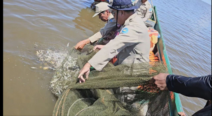 វត្ថុតាងដែលរឹបអូសបាន ត្រូវក្រុមការងារជំនាញរុះរើ និងបំផ្លាញចោលនៅនឹងកន្លែងកើតហេតុ ព្រមទាំងចាក់លែងកូនត្រីចម្រុះចំនួន ៤១៤គីឡូក្រាមចូលទៅក្នុងបឹងធម្មជាតិវិញ៕