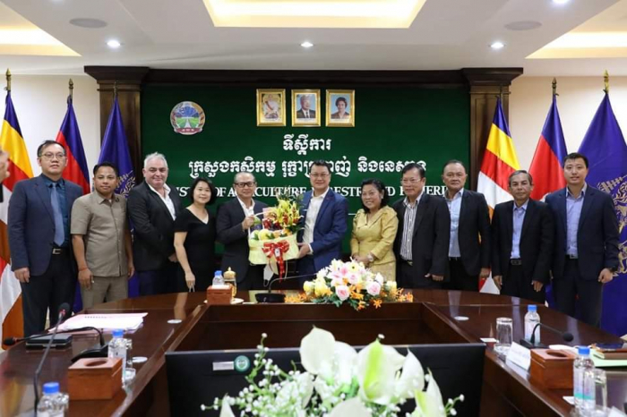 ឯកឧត្តម ឌិត ទីណា រដ្ឋមន្ត្រីក្រសួងកសិកម្ម រុក្ខាប្រមាញ់ និងនេសាទ ទទួលជួបក្រុមហ៊ុនចិញ្ចឹមគោយកទឹកដោះ MOMO FARM អំពីការពង្រីកផ្ទៃដីផលិតកម្មរបស់ខ្លួន