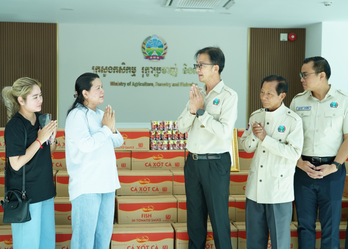 ឯកឧត្តមរដ្ឋលេខាធិការប្រចាំការ​ បានថ្លែងអំណរគុណយ៉ាងជ្រាលជ្រៅជូនចំពោះ លោកស្រី​នាយិកាក្រុមហ៊ុន និងស្វាមី​ ព្រមទាំងក្រុមគ្រួសារ ដែលបានចូលរួមឧបត្ថម្ភត្រីខចំនួន​ ២០០កេសធំ​​​ សម្រាប់ផ្គត់ផ្គង់ជូនប្រជាពលរដ្ឋភៀសសឹកដែលកំពុងស្នាក់នៅក្នុងខេត្តបន្ទាយមានជ័យ។