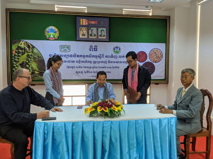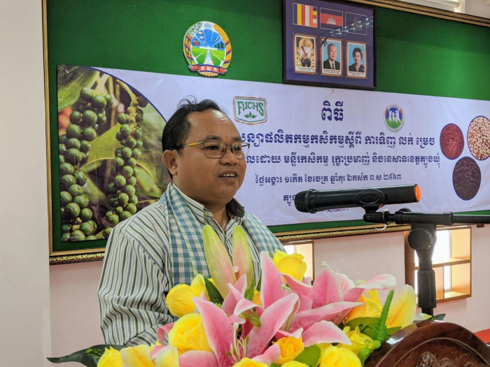នាព្រឹកថ្ងៃអង្គារ ១កើត ខែចេត្រ ឆ្នាំកុរ ឯកស័ក ព.ស.២៥៦៣ ត្រូវនឹងថ្ងៃទី២៤ ខែមីនា ឆ្នាំ២០២០ មន្ទីរកសិកម្ម រុក្ខាប្រមាញ់ និងនេសាទខេត្តត្បូងឃ្មុំ បានរៀបចំពិធីចុះកិច្ចសន្យាផលិតកម្មកសិកម្ម រវាងសហភាពសហគមន៍កសិកម្ម ជាមួយក្រុមហ៊ុន ហ៊្វុកស៍(ខេមបូឌា)ឯ.ក ក្នុងការលក់ ទិញ ម្រេច ចំនួន ២៤៥តោន ក្រោមអធិបតីភាពឯកឧត្តម ពាង ណារិទ្ធ អភិបាលរងខេត្តត្បូងឃ្មុំ និងជាប្រធានអនុគណៈកម្មាធិការសម្របសម្រួលកិច្ចសន្យាផលិតកម្មកសិកម្ម នៅសាលប្រជុំមន្ទីរកសិកម្ម រុក្ខាប្រមាញ់ និងនេសាទ។