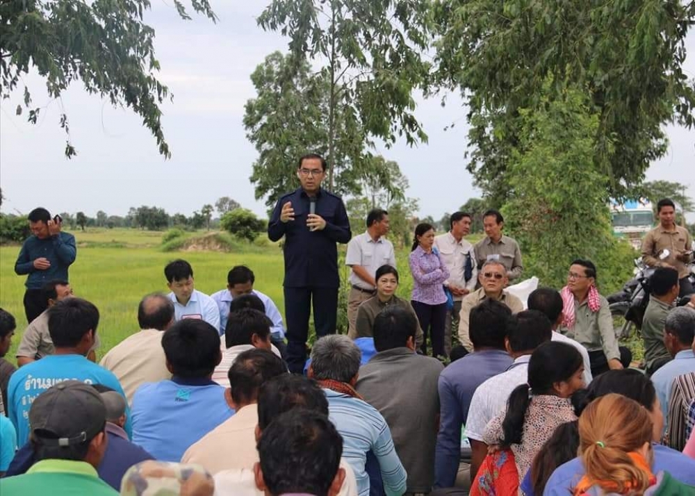 នៅចំពោះមុខប្រជាពលរដ្ឋជាង១៥០ នាក់ដែលជាម្ចាស់ស្រែ ឯកឧត្តមរដ្ឋមន្រ្តីបានពាំនាំនូវការផ្តាំផ្ញើសាកសួរសុខទុក្ខរបស់សម្តេចអគ្គមហាសេនាបតីតេជោហ៊ុន សែន នាយករដ្ឋមន្រ្តីនៃព្រះរាជាណាចក្រកម្ពុជា និងសម្តេចកិត្តិព្រឹត្តបណ្ឌិតប៊ុន រ៉ានីហ៊ុន សែន ប្រធានកាកបាតក្រហមកម្ពុជា ដែលសម្តេចទាំងពីរសូមជួយចែករំលែកនូវសេចក្តីទុក្ខលំបាករបស់ប្រជា ពលរដ្ឋដែលបានទទួលរងនូវគ្រោះទឹកជំនន់ និងគ្រោះរាំង ស្ងួតនៅទូទាំងខេត្តបន្ទាយមានជ័យ និងជាពិសេសប្រជា ពលរដ្ឋស្រុកភ្នំស្រុក ហើយ សម្តេចបានជូនពរនិងបន់ស្រន់ឲ្យពលរដ្ឋរងគ្រោះគ្រប់ៗគ្រួសារបានឆ្លងផុតនូវគ្រោះធម្មជាតិនេះឲ្យឆាប់នាពេលខាងមុខ។