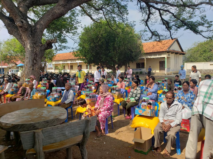 ថ្ងៃសៅរ៍ ១១រោច ខែចេត្រ ឆ្នាំជូត ទោសក័ ព.ស ២៥៦៣ ត្រូវនឹង ថ្ងៃទី១៨ ខែមេសា ឆ្នាំ២០២០ ឯកឧត្តម អេង ជាសាន ប្រតិភូរាជរដ្ឋាភិបាលកម្ពុជា ទទួលបន្ទុកជា ប្រធានរដ្ឋបាលជលផល បានចូលរួមអមដំណើរ ឯកឧត្តម ឃុន សាវឿន អនុរដ្ឋលេខាធិការក្រសួងកសិកម្មរុក្ខាប្រមាញ់ និងនេសាទ និងជាប្រធានក្រុមការងារថ្នាក់កណ្តាលចុះជួយ ឃុំហាន់ជ័យ គគរ វិហារធំ និងឃុំក្រឡា បានដឹកនាំក្រុមការងារចុះយកស្បៀងចែកជូន ប្រជាពលរដ្ឋ ចាស់ជរា ទីទាល់ក្រ ក្នុងឃុំវិហារធំ ៣១គ្រួរសារ និងឃុំក្រឡា ៣៧គ្រួសារ ក្នុង១គ្រួសារទទួលបានអង្ករ មី ទឹកត្រី ទឹកស៊ីអ៊ីវ ត្រីខ សាប៊ូ ក្រម៉ា។