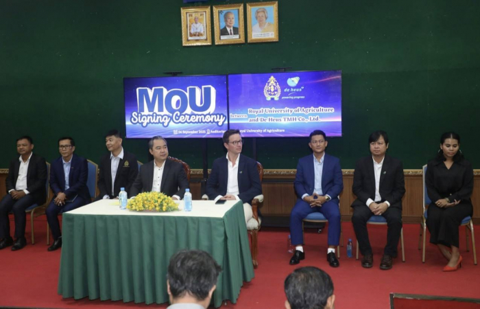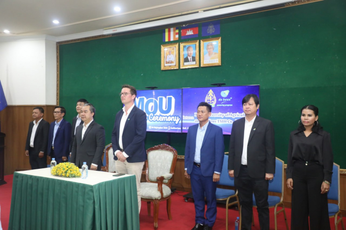 នៅថ្ងៃទី៤ ខែកញ្ញា ឆ្នាំ២០២៥ ឯកឧត្តម គី ច័ន្ទរំដួល អនុរដ្ឋលេខាធិការ ក្រសួងកសិកម្ម រុក្ខាប្រមាញ់ និងនេសាទ បានអញ្ជើញជាអធិបតីភាពក្នុងពិធីចុះអនុស្សរណៈនៃការយោគយល់គ្នា រវាងសាកលវិទ្យាល័យភូមិន្ទកសិកម្ម និងក្រុមហ៊ុន De Heus TMH Co., Ltd.។