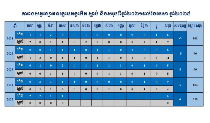គិតត្រឹមដើមខែមេសា ឆ្នាំ២០២៥នេះ កម្ពុជាទទួលបានកូនផ្សោតកើតថ្មីចំនួន ៦ក្បាល ក្នុងនោះ៤ក្បាល កើតនៅខេត្តក្រចេះ និង២ក្បាលនៅខេត្តស្ទឹងត្រែង ដែលធ្វើឲ្យចំនួនសត្វផ្សោតទន្លេមេគង្គនៅកម្ពុជាសរុប កើនឡើងដល់ចំនួន ១១០ក្បាល។