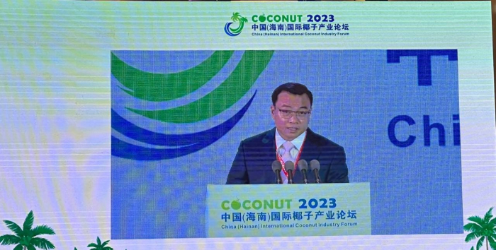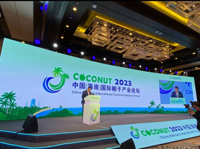 ឯកឧត្តមបានថ្លែងសុន្ទរកថាគន្លឹះ ដោយបង្ហាញពីសក្តានុពលដំណាំដូងនៅកម្ពុជាទៅកាន់តំណាងប្រទេស អង្គទូតនានា និងវិស័យឯកជនចិន ដែលចូលរួមនៅក្នុងវេទិកា ដើម្បីឱ្យយល់ច្បាស់ពីផលិតកម្ម ទីផ្សារ និងឱកាសវិនិយោគនៅកម្ពុជា។