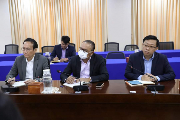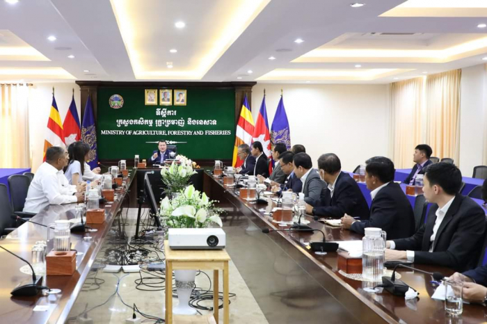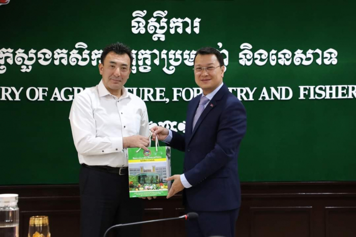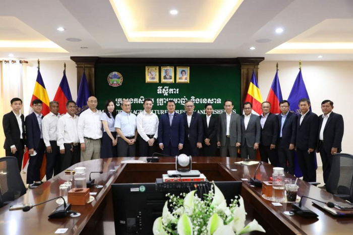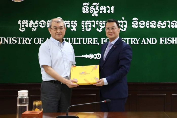 នាព្រឹកថ្ងៃទី២១ ខែកុម្ភៈ ឆ្នាំ២០២៣ ឯកឧត្តម ឌិត ទីណា រដ្ឋមន្ត្រី ក្រសួងកសិកម្ម រុក្ខាប្រមាញ់ និងនេសាទ និងថ្នាក់ដឹកនាំ បានទទួលជួបពិភាក្សាការងារជាមួយតំណាងក្រុមហ៊ុនកសិកម្ម និងធនាគារជប៉ុន នៅទីស្តីការក្រសួងកសិកម្ម រុក្ខាប្រមាញ់ និងនេសាទ។