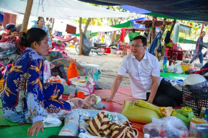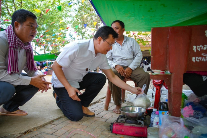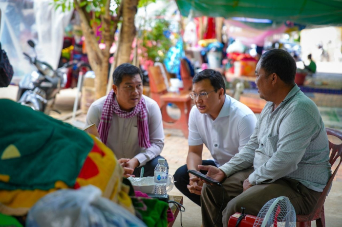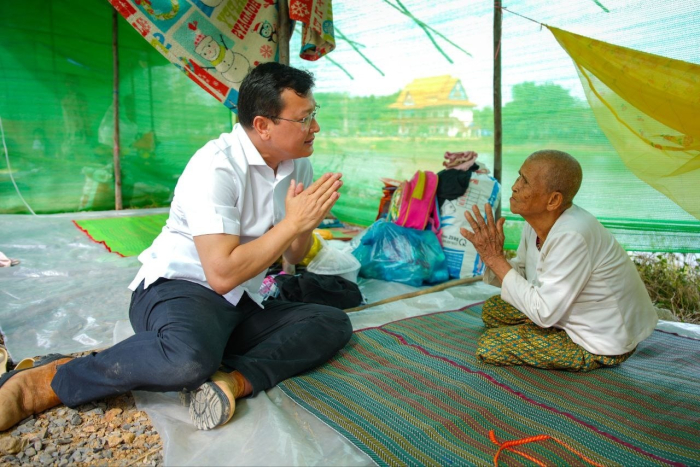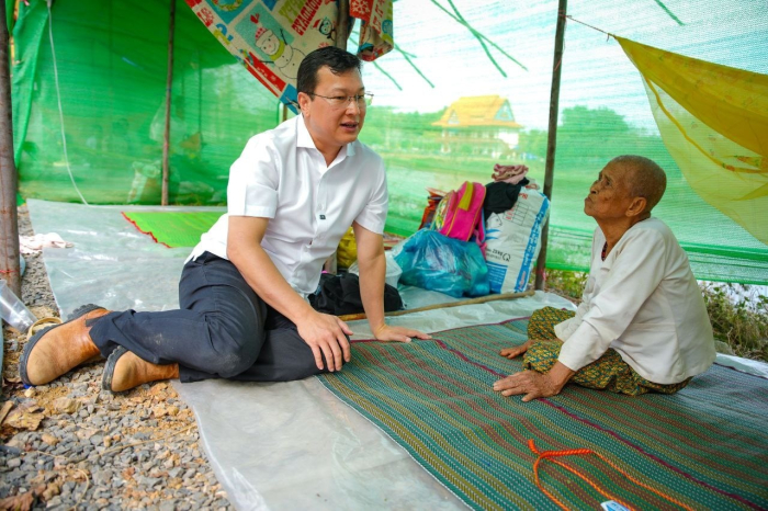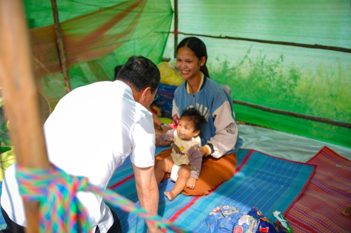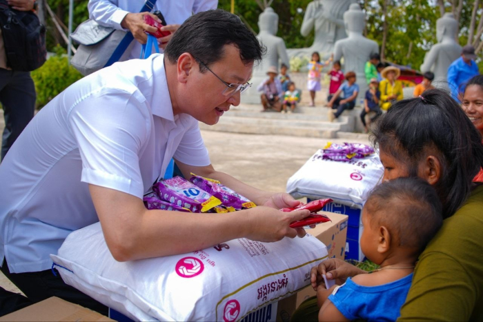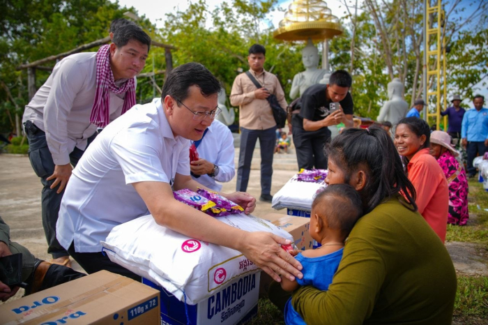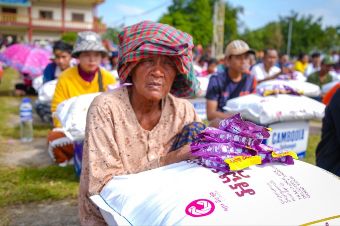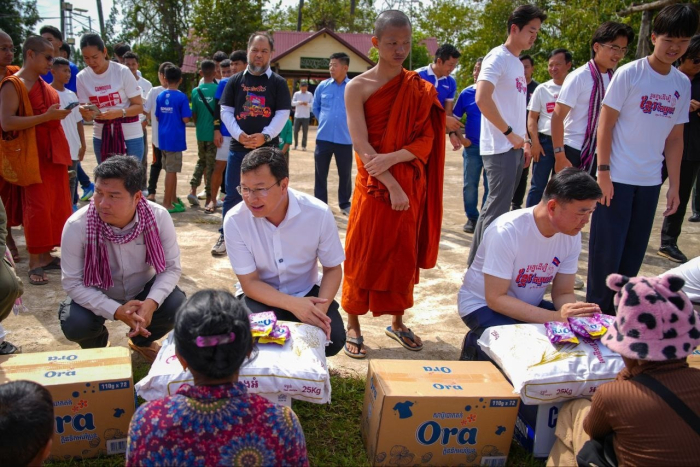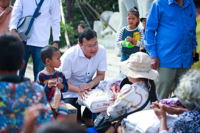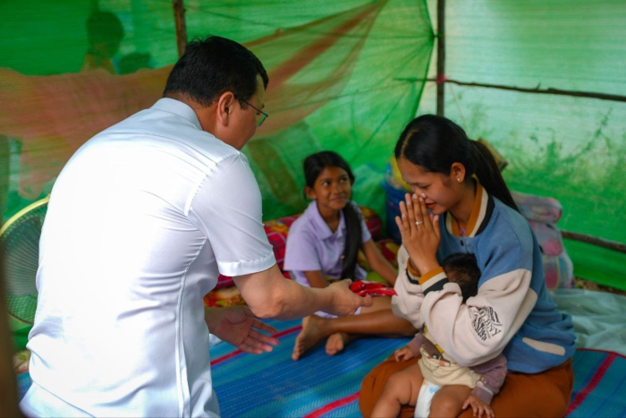 នាព្រឹកថ្ងៃទី១៤ ខែធ្នូ ឆ្នាំ២០២៥ ឯកឧត្តម ឌិត ទីណា រដ្ឋមន្រ្តីក្រសួងកសិកម្ម រុក្ខាប្រមាញ់ និងនេសាទ និងលោកអ្នកឧកញ៉ា លាង ឃុន សហស្ថាបនិកក្រុមហ៊ុន ជីប ម៉ុង ព្រមទាំងក្រុមការងាររាជរដ្ឋាភិបាលចុះមូលដ្ឋានខេត្តបន្ទាយមានជ័យ បានសួរសុខទុក្ខ និងនាំយកអង្ករ ទឹកសុទ្ធ និងសាប៊ូ ជូនពុកម៉ែបងប្អូនជនភៀសសឹកមកមណ្ឌលសុវត្ថិភាព នៅក្រុងសិរីសោភ័ណ្ឌ ខេត្តបន្ទាយមានជ័យ។